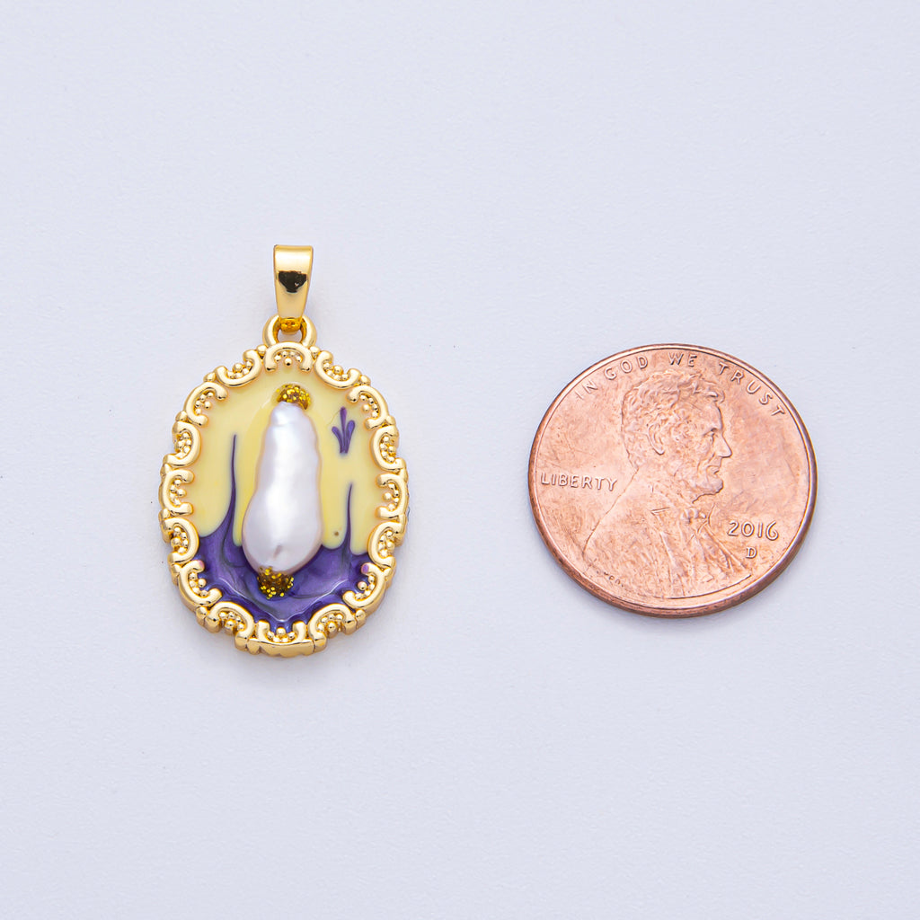 18K Gold Filled 24mm Shell Pearl Yellow Purple Multicolor Enamel Oval Pendant | AF1205
