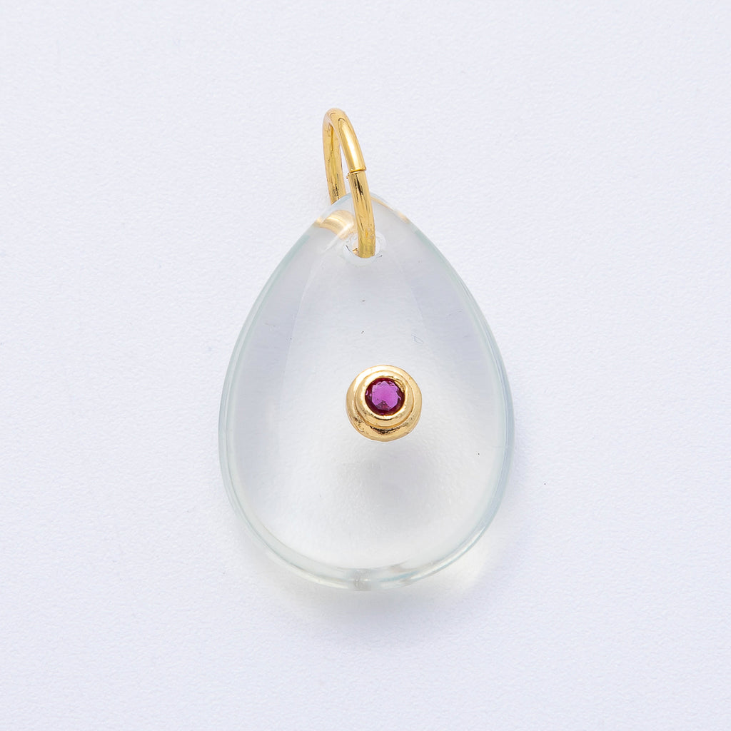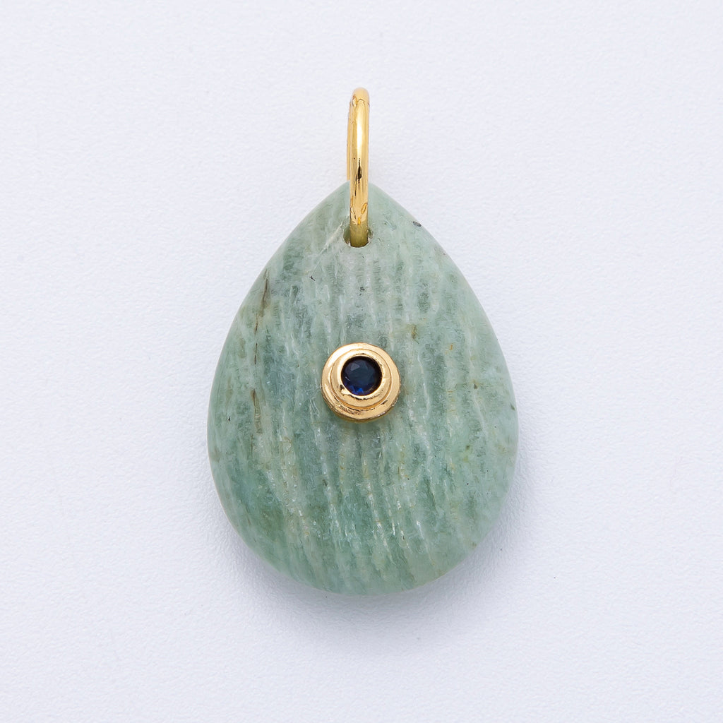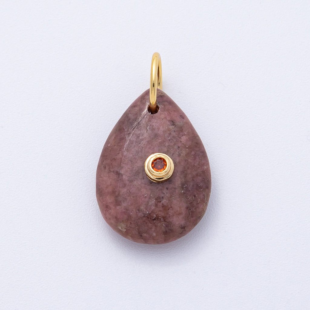 18K Gold Filled 25mm CZ Embedded Natural Gemstone Teardrop Charm | AK109 - AK112