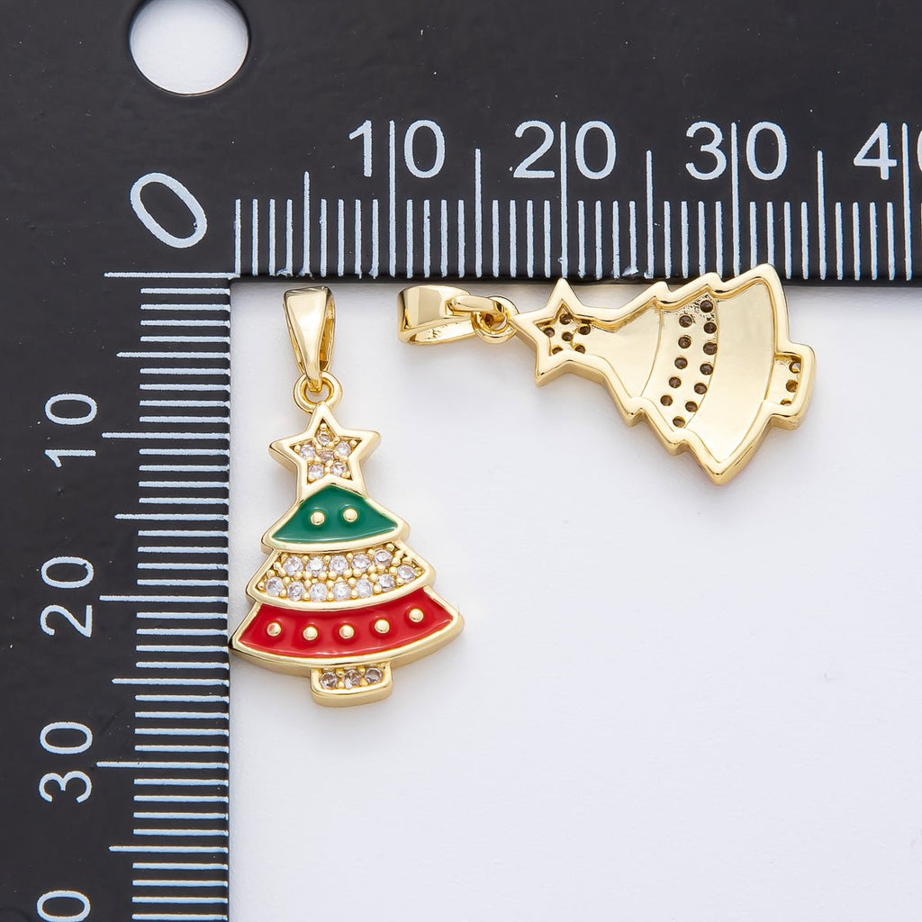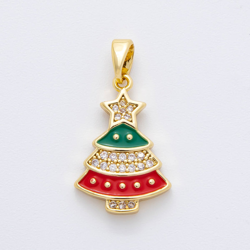 18K Gold Filled 25mm Micro Paved CZ Enamel Red & Green Christmas Tree Pendant | AF-A1139