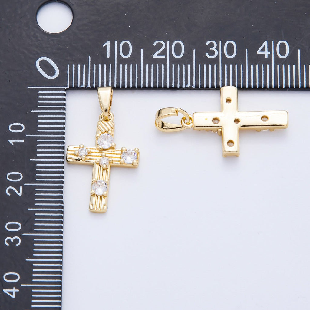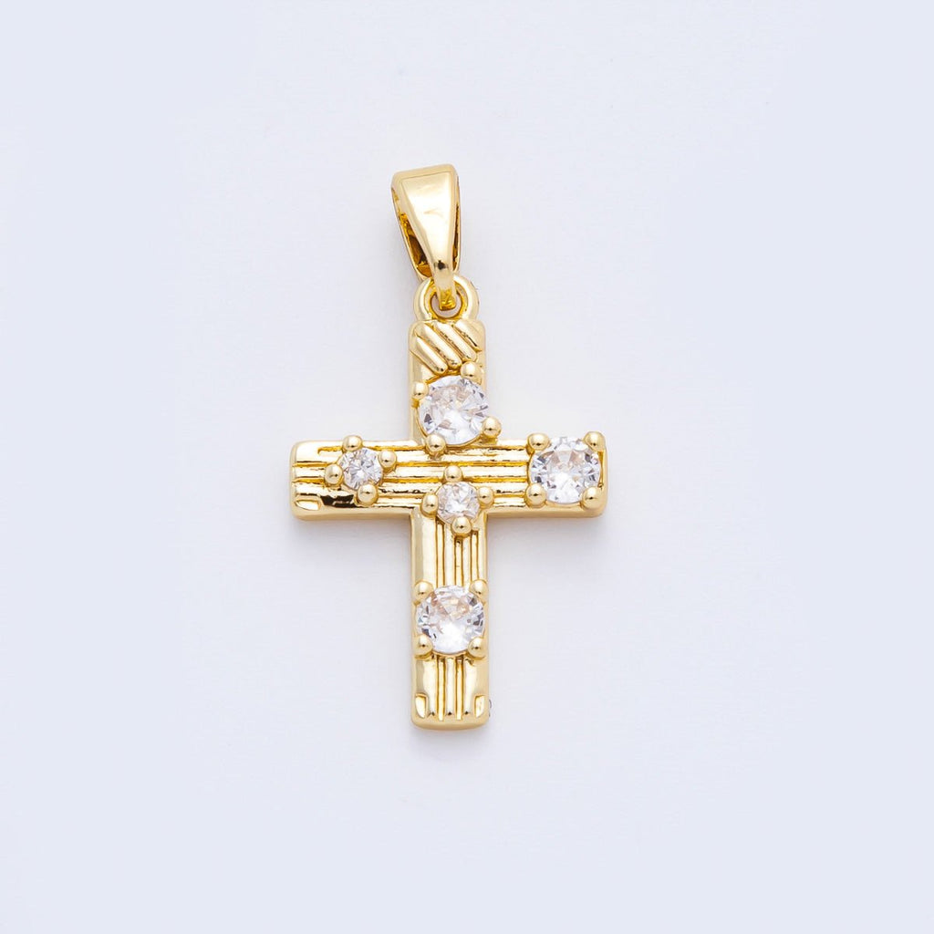 18K Gold Filled 25mm Micro Paved CZ Textured Christ Cross Pendant | AF-A1124