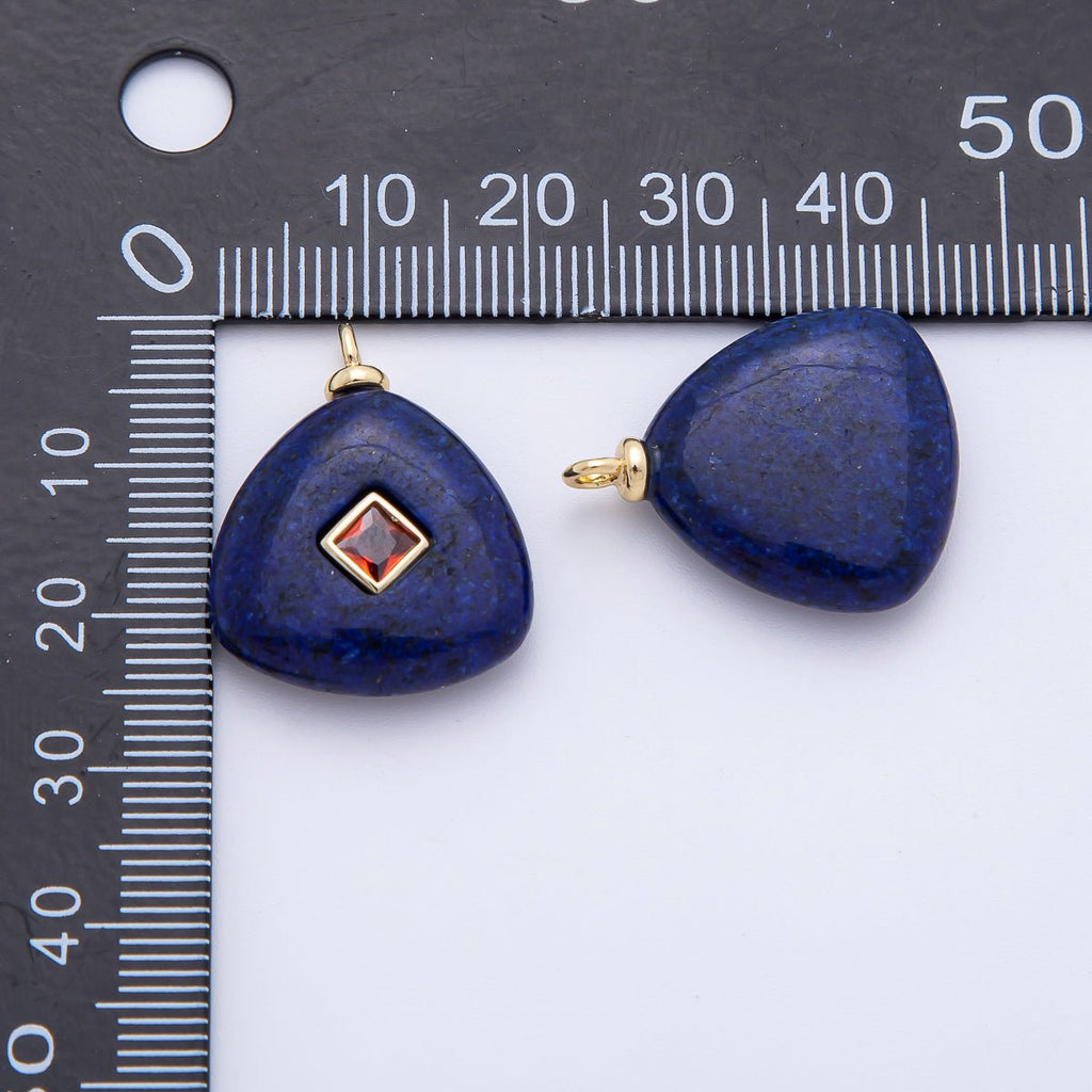 18K Gold Filled 25mm Orange CZ Rhombus Accent Triangle Lapis Gemstone Drop Charm | AF1329