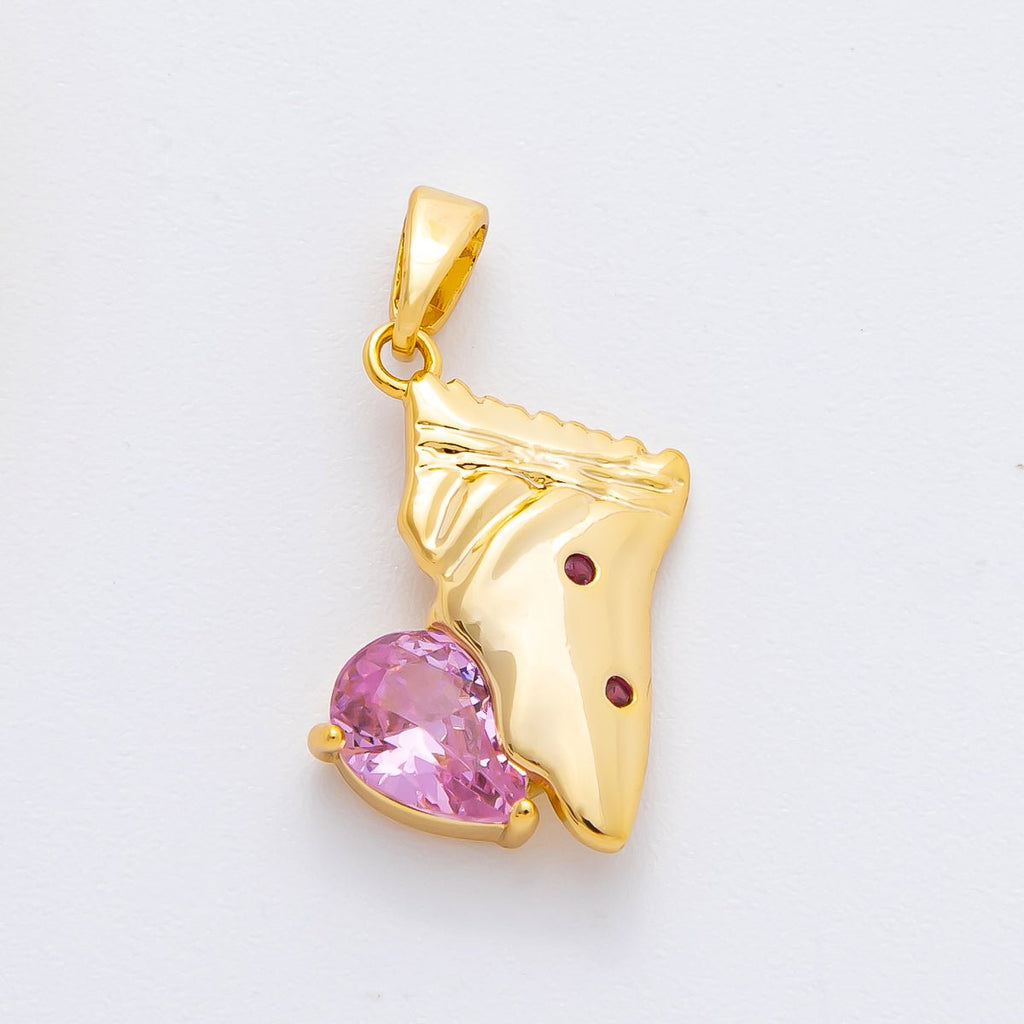18K Gold Filled 25mm Pink Teardrop CZ Candy Wrap Food Pendant | AF-A1130