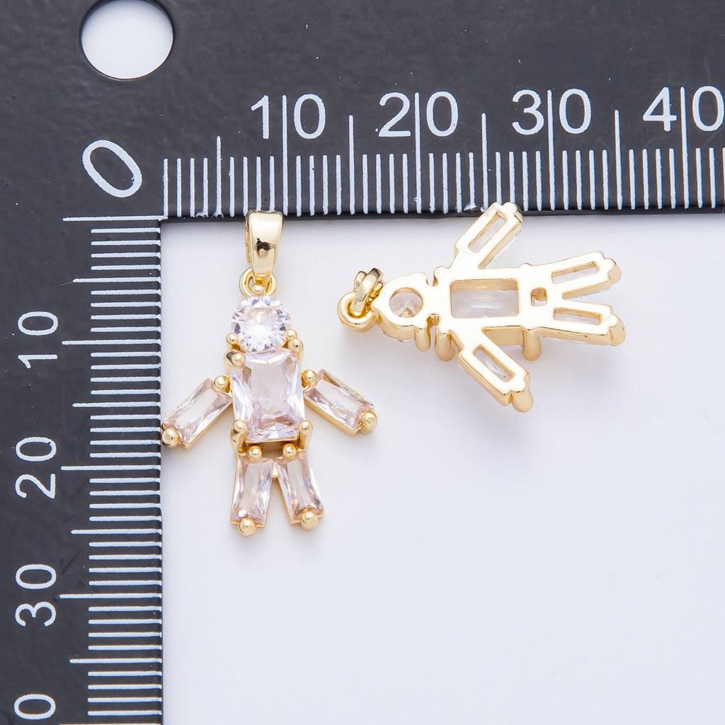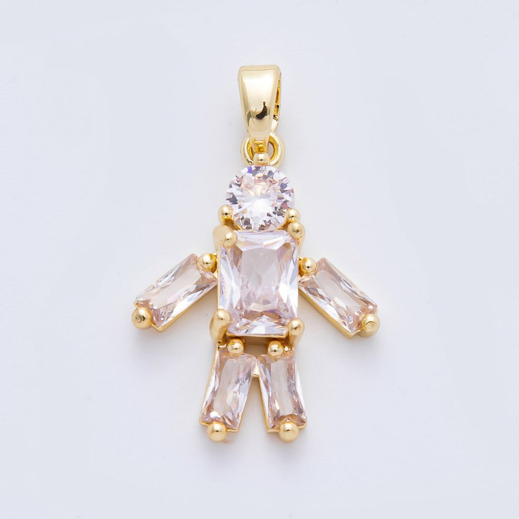 18K Gold Filled 25mm Rectangular & Round CZ Robot Stickman Pendant | AF-A1126