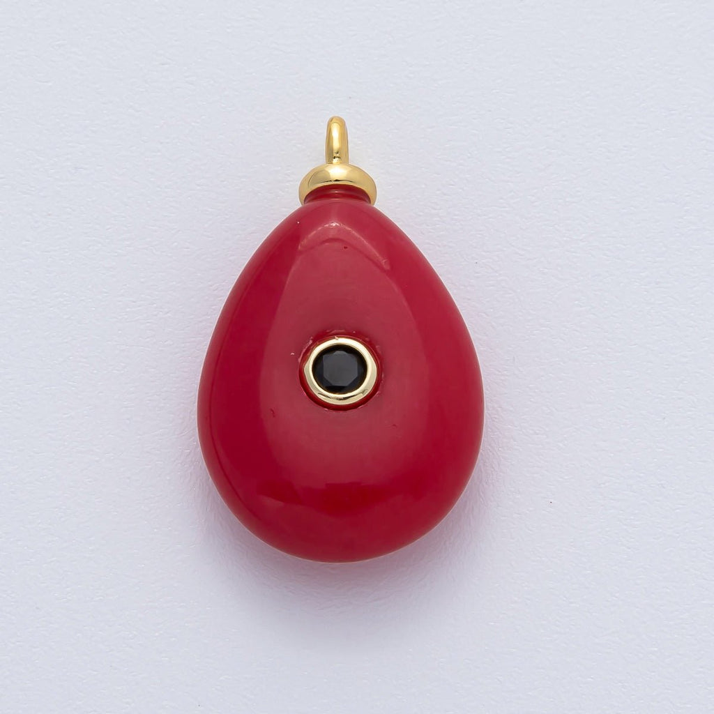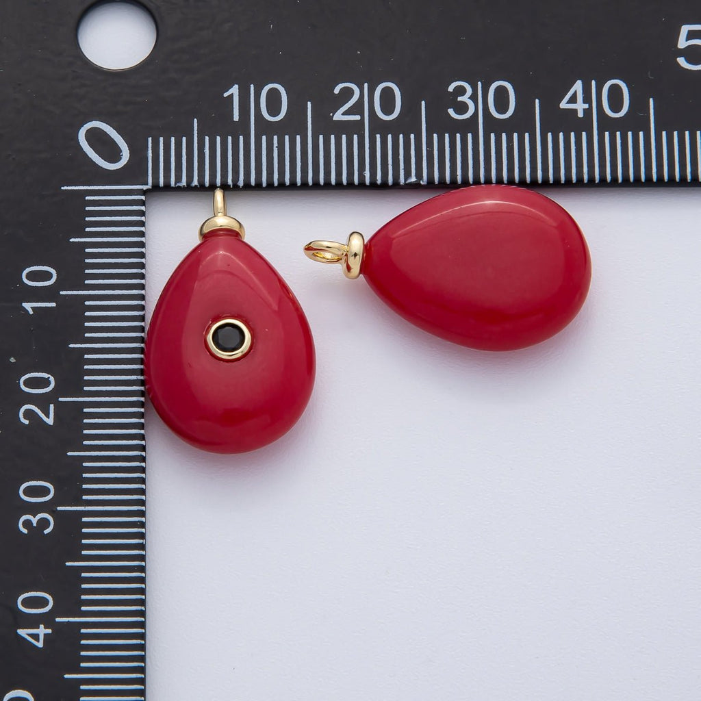 18K Gold Filled 25mm Black CZ Embedded Red Carnelian Teardrop Gemstone Charm | AF1446