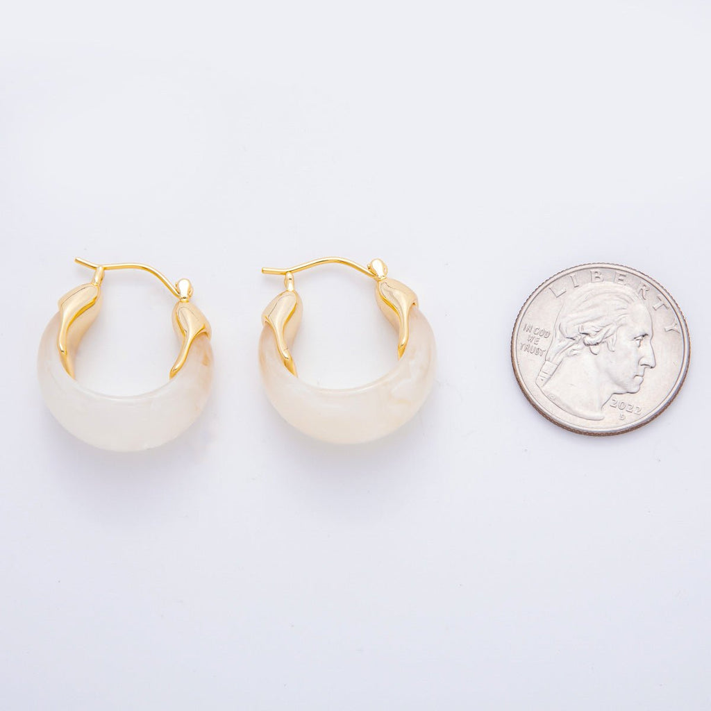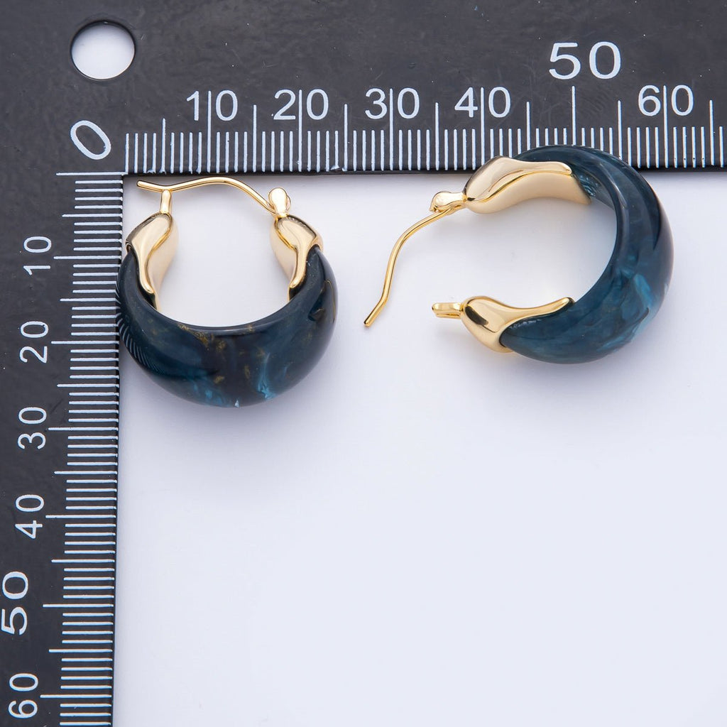 18K Gold Filled 25mm Brown, White, Blue, Black Resin Molten Gold Latch Hoops Earrings | AJ261 - AJ264