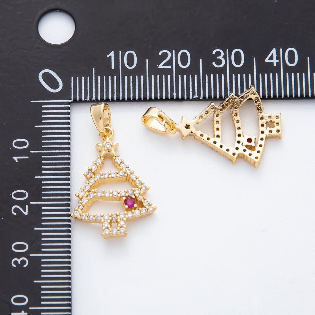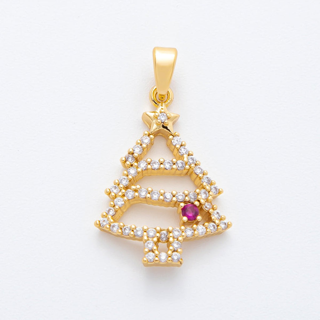 18K Gold Filled 27mm Clear & Fuchsia Micro Paved CZ Christmass Tree Pendant | AF-A1135