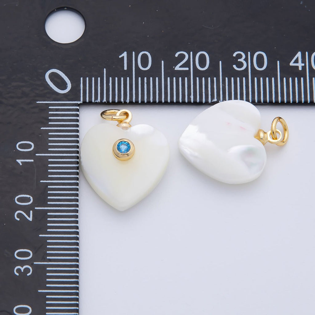 18K Gold Filled 27mm Green, Pink, Blue CZ Round Accent Heart-Shaped Shell Pearl Drop Charm | AF1395 AF1396