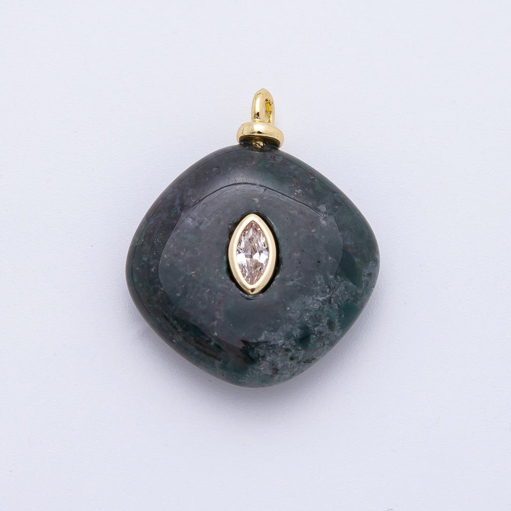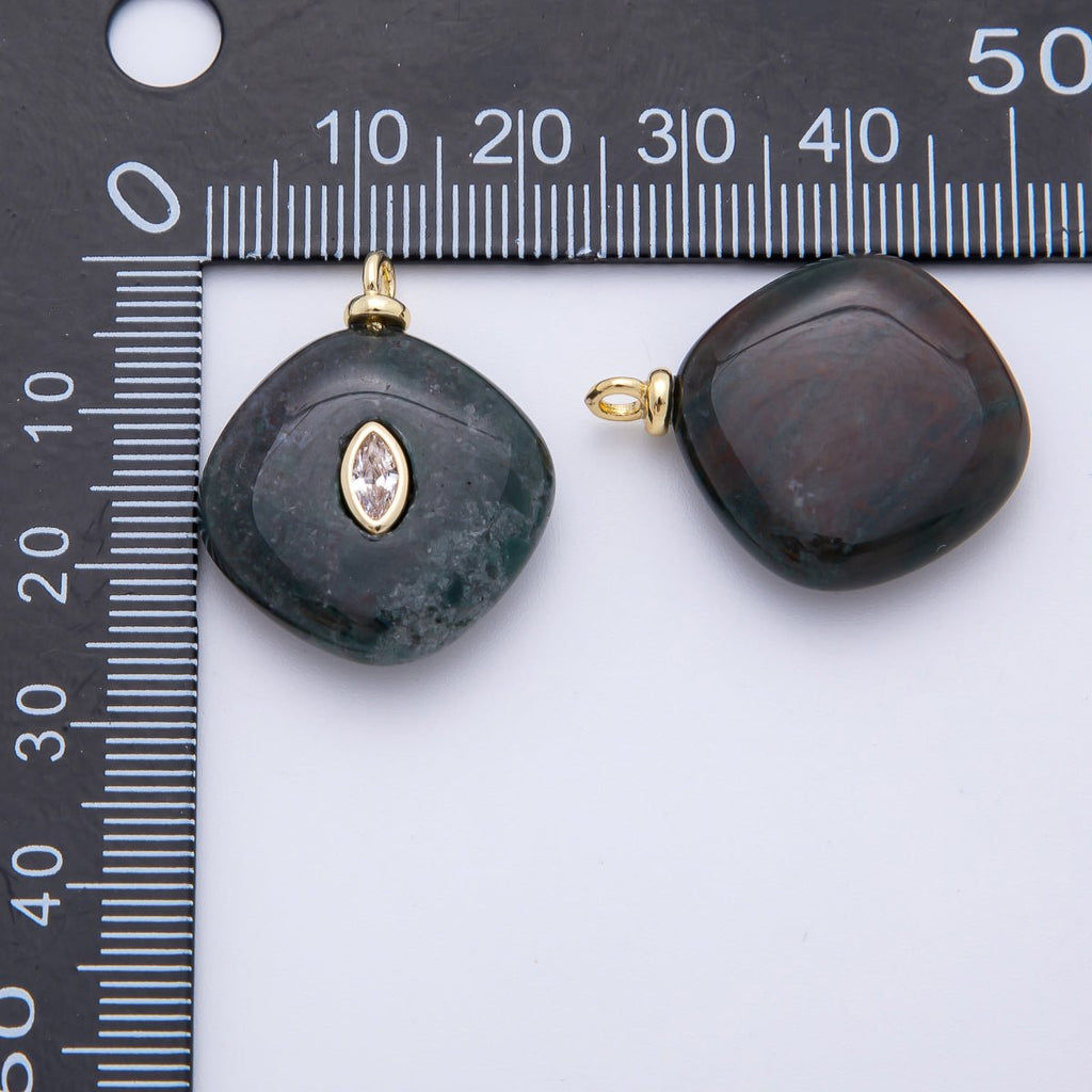 18K Gold Filled 27mm Oval CZ Accent Rhombus India Agate Gemstone Drop Charm | AF1339