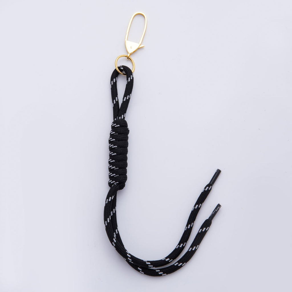 18K Gold Filled 289mm Knotted Black Cord Keychain Charm | WB-00155