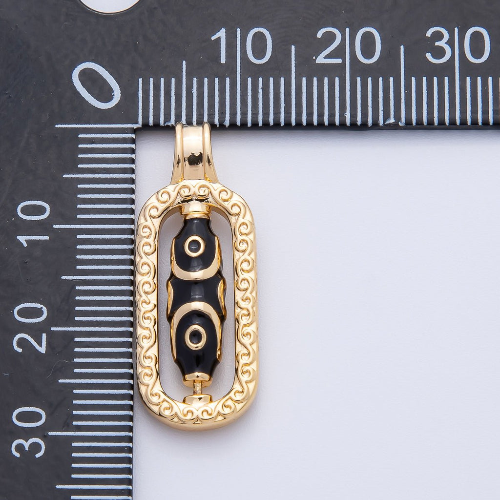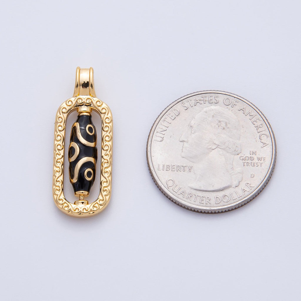 18K Gold Filled 29mm Black Handpainted Enamel Tibetan Dzi Bead Drop Pendant | AF1145