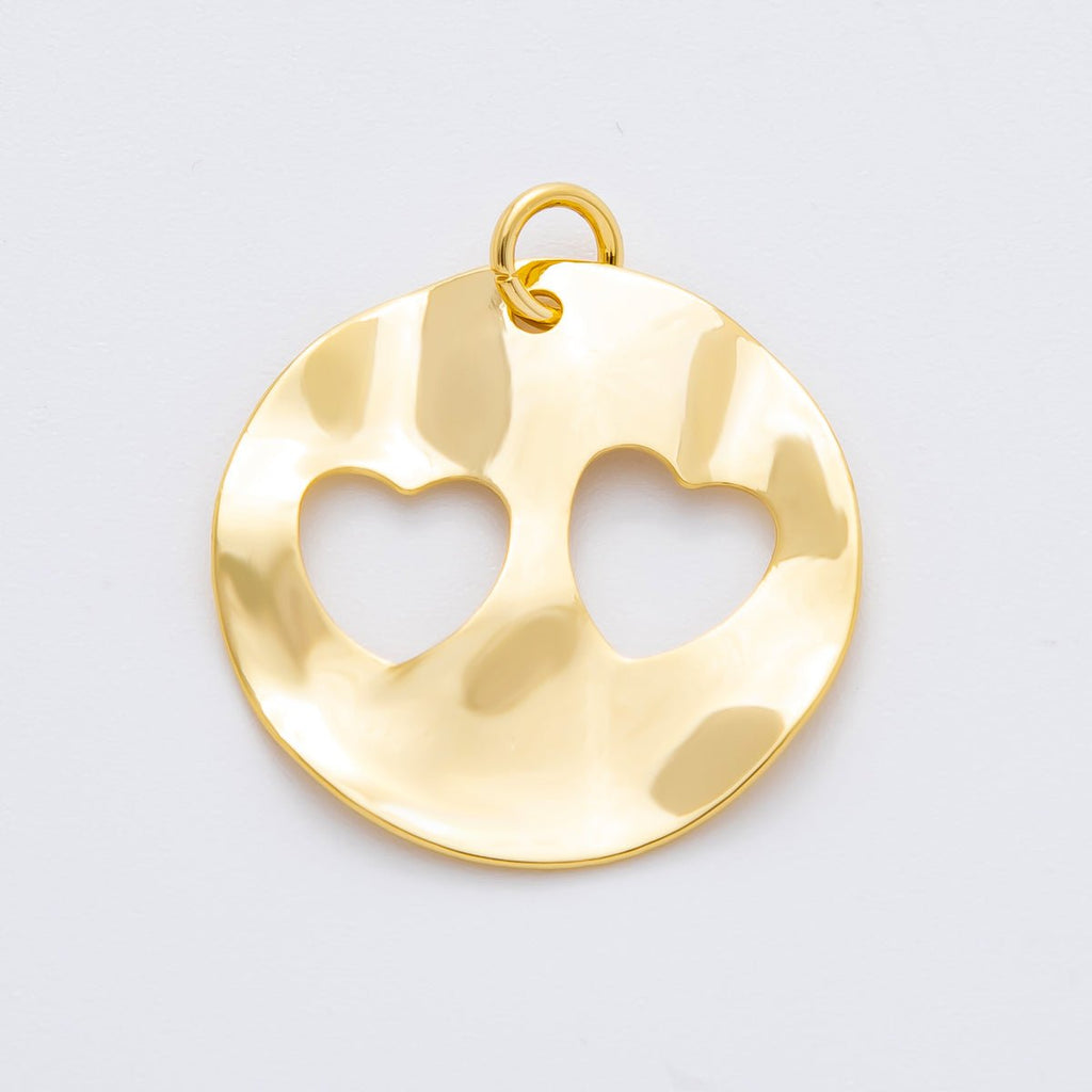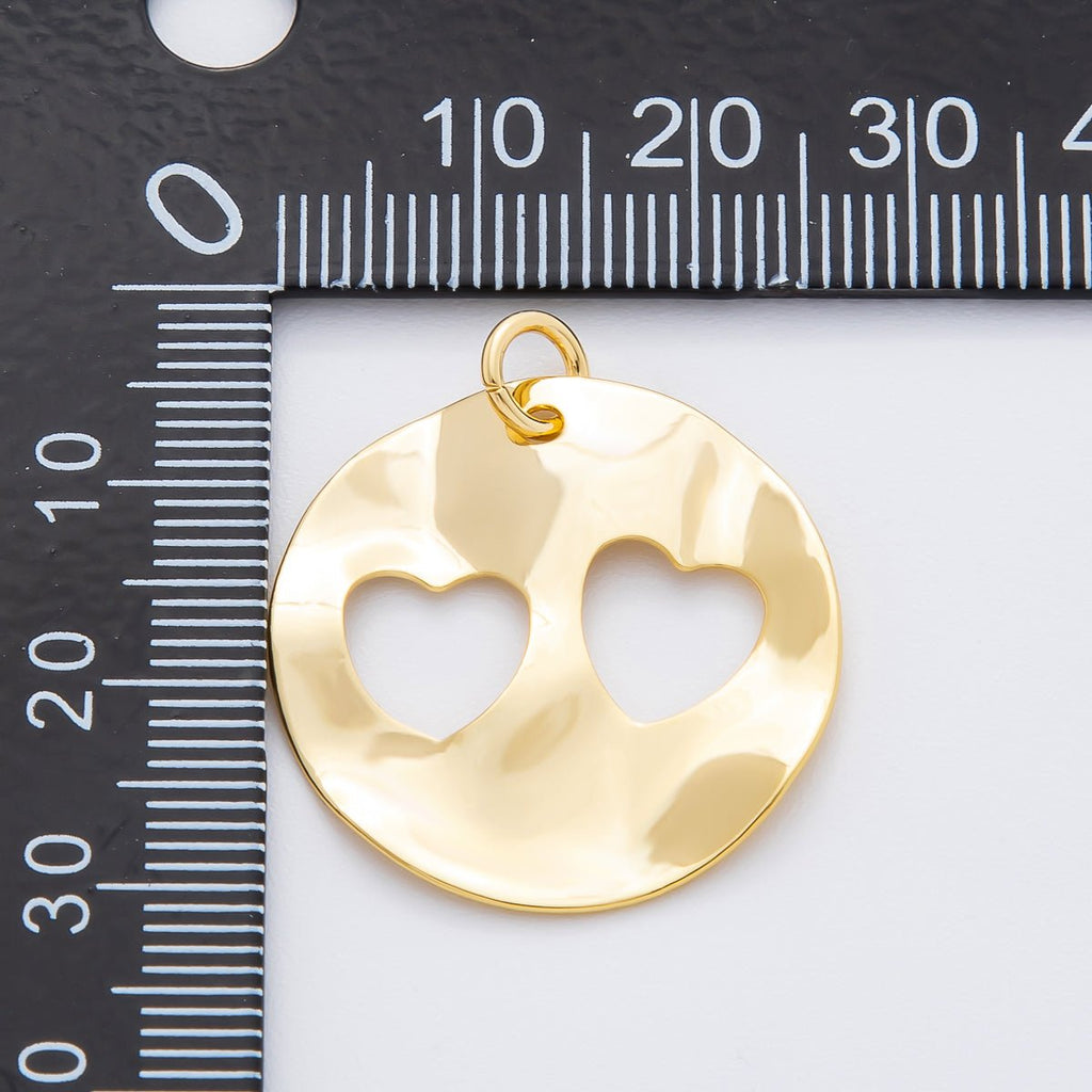 18K Gold Filled 29mm Hammered Rustic Open Twin Heart Charm | N-A1417