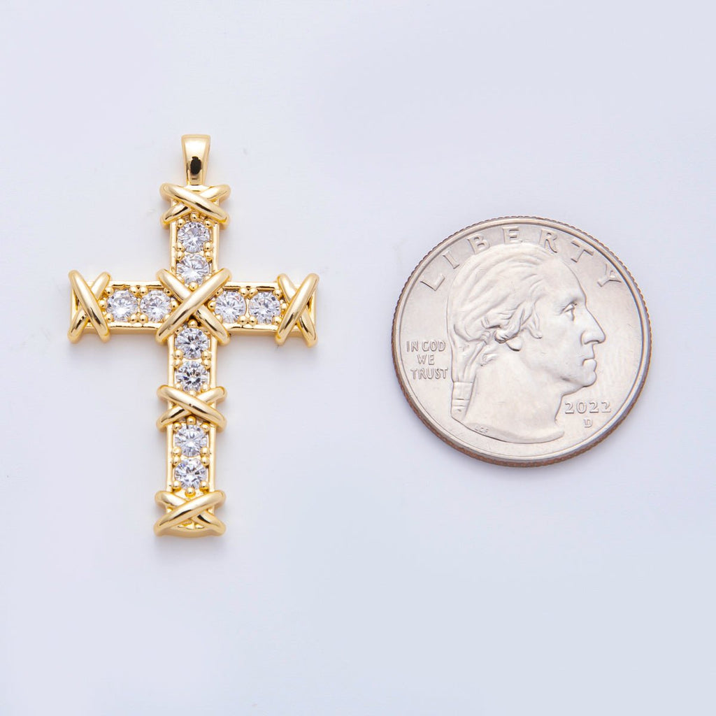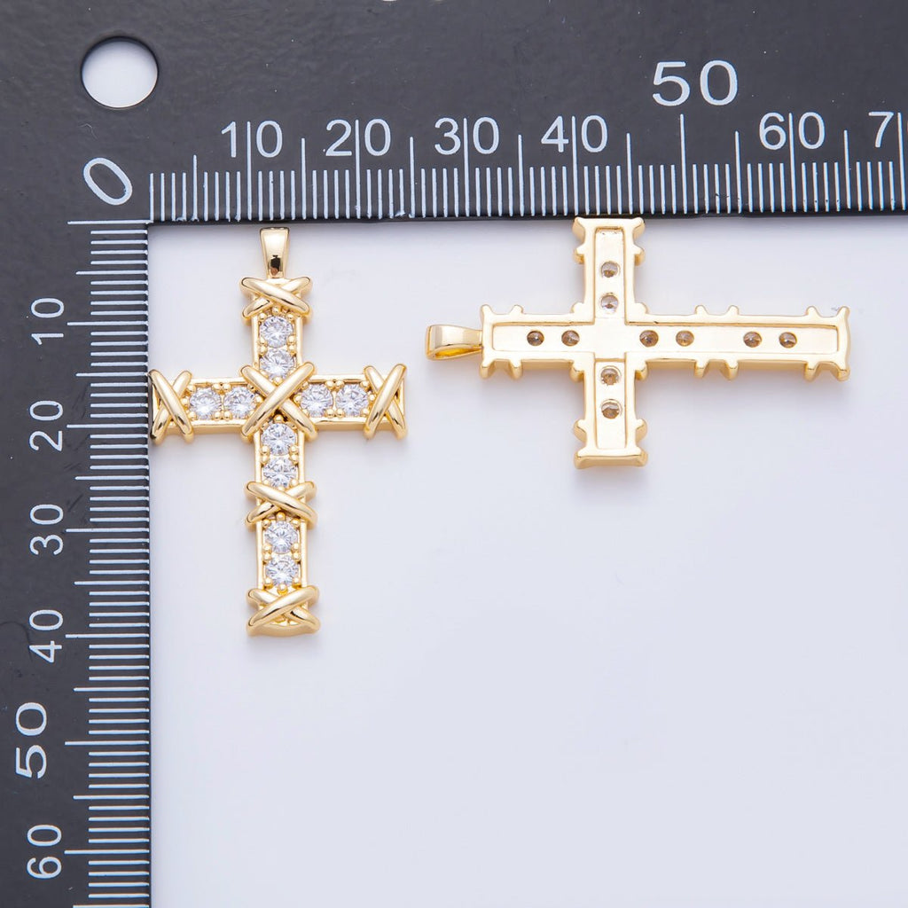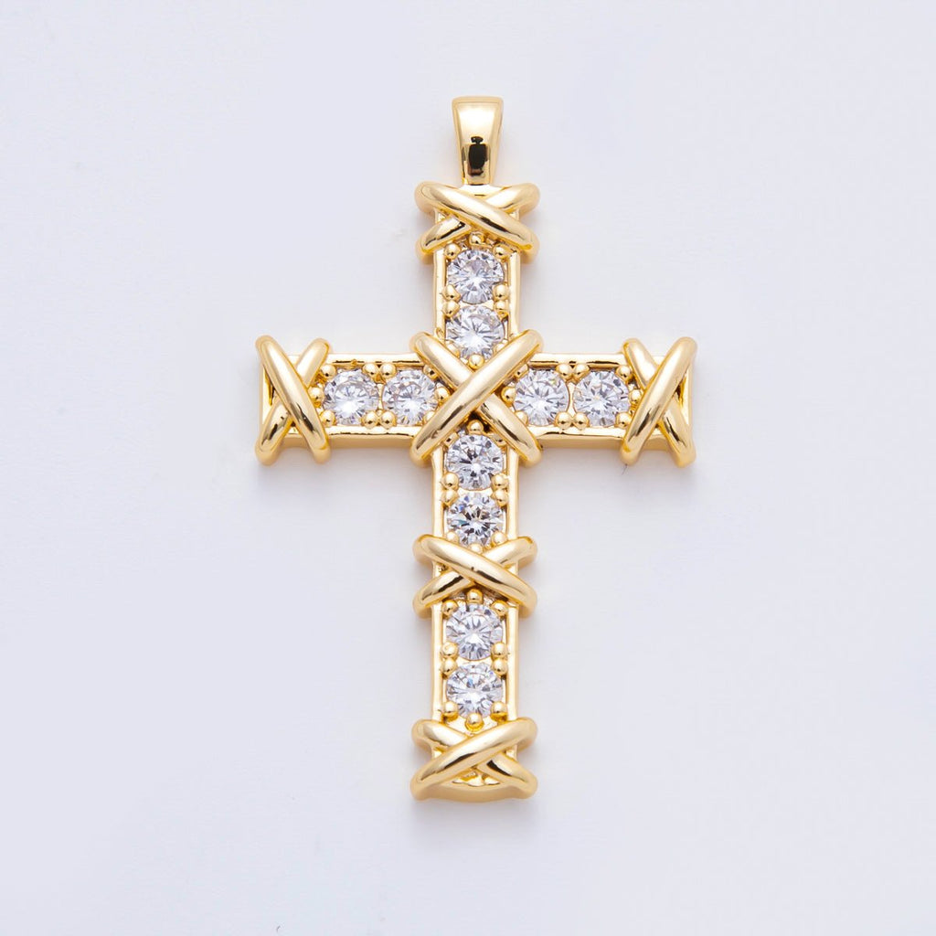 18K Gold Filled 29mm Micro Paved CZ Religious Christian Cross Charm | N655