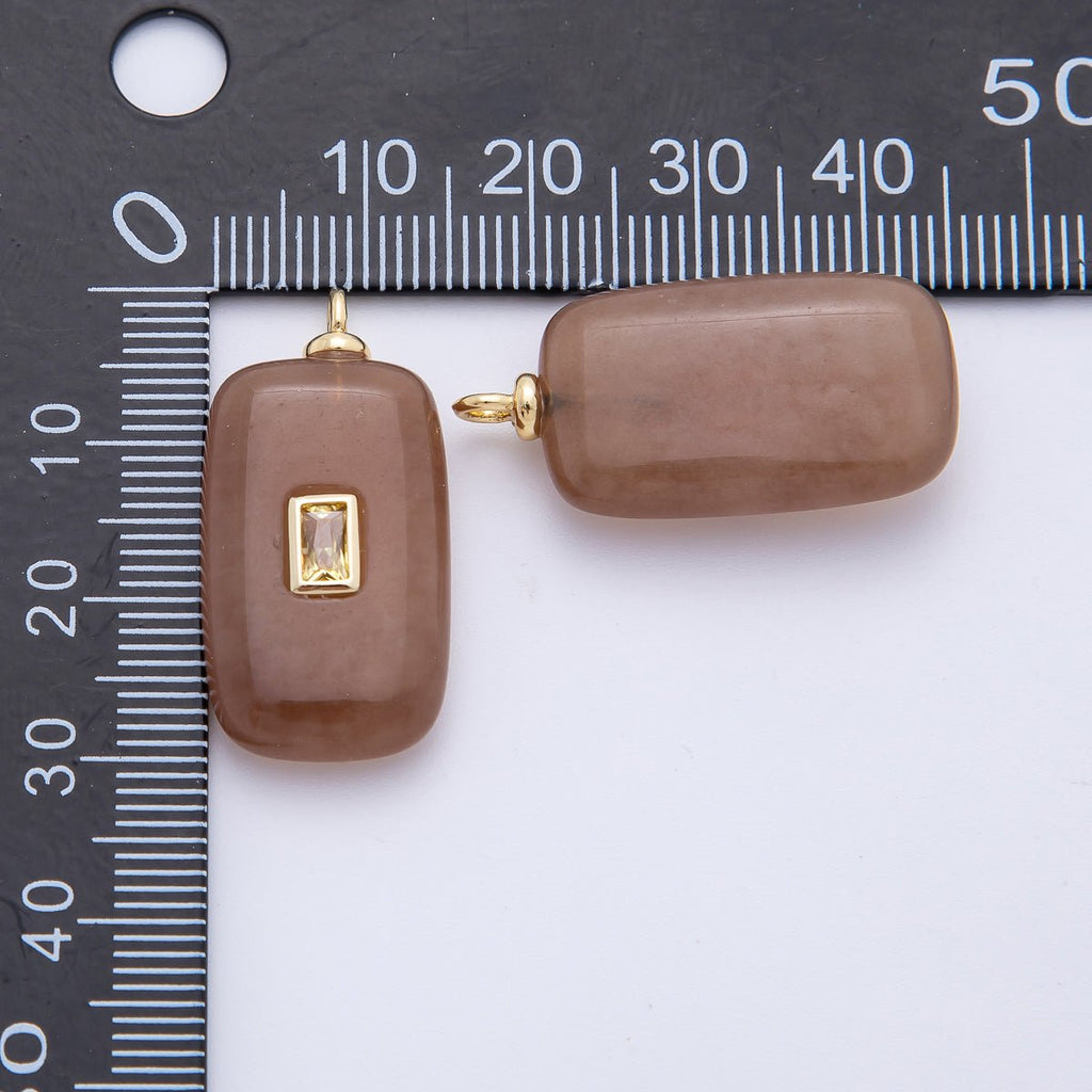 18K Gold Filled 29mm Yellow CZ Rectangle Accent Coffe Gold Gemstone Drop Charm | AF1333