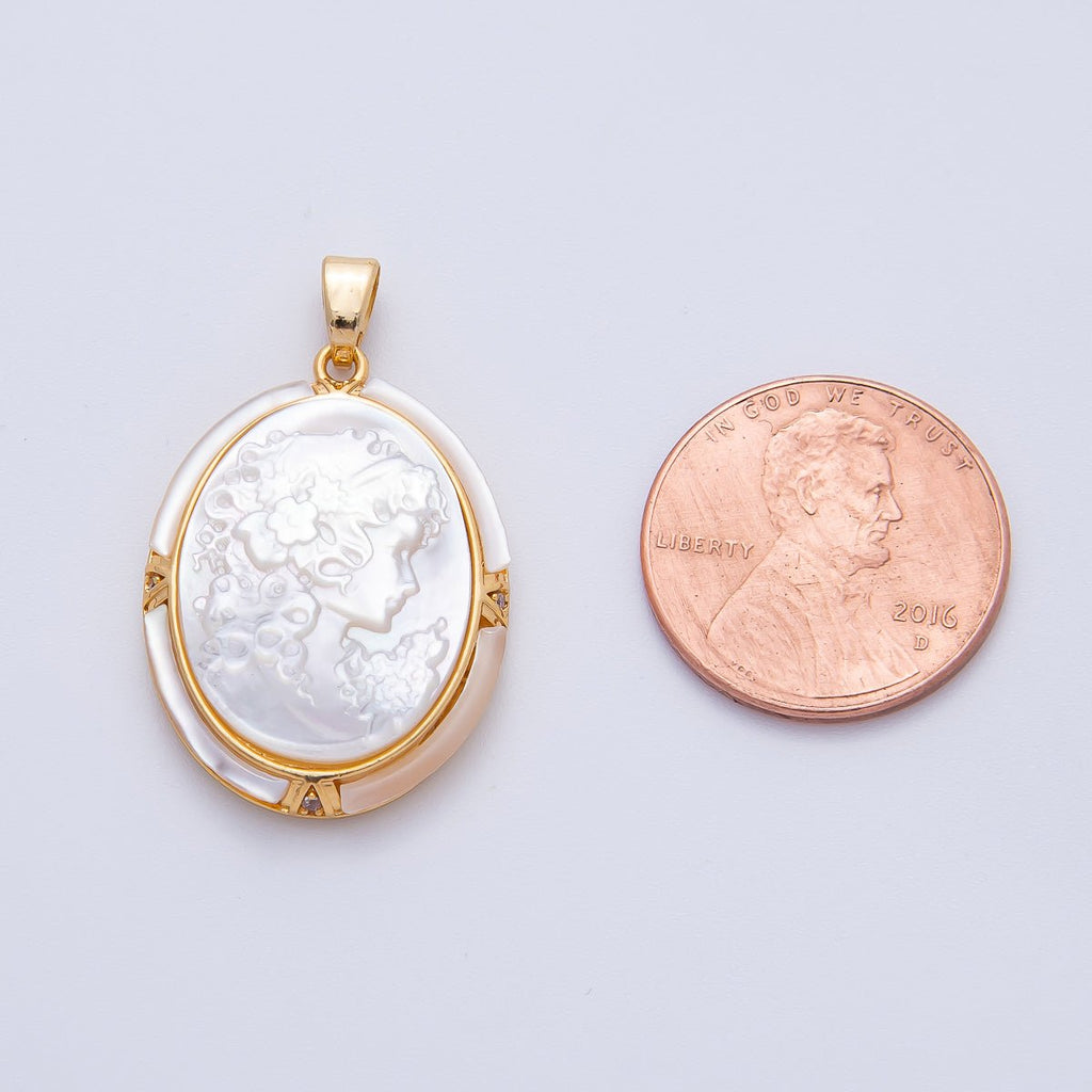 18K Gold Filled 30.5mm Women Girl Princess Portraits Silhouette Bezel Oval Pendant | AF1149