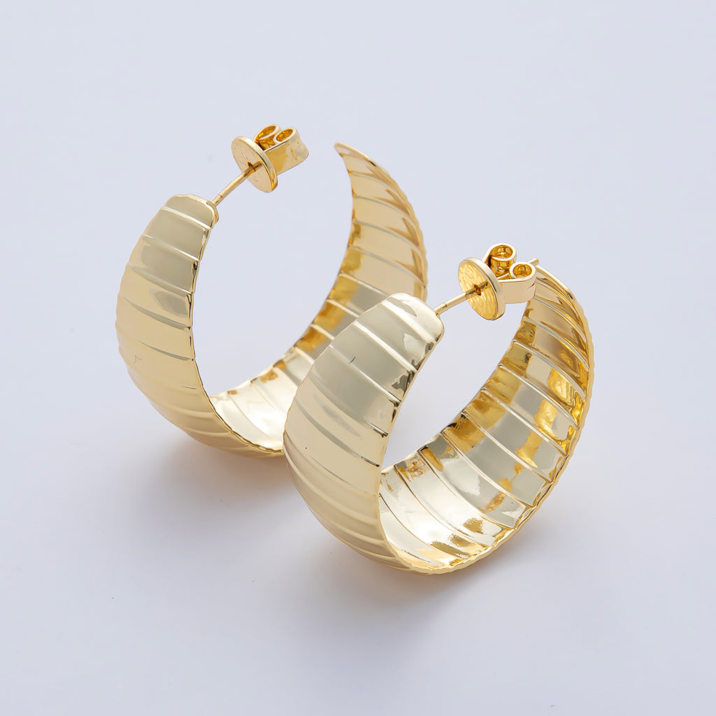 18K Gold Filled 30mm Ribbed Geometric C-Shaped Hoop Earrings | AD1642