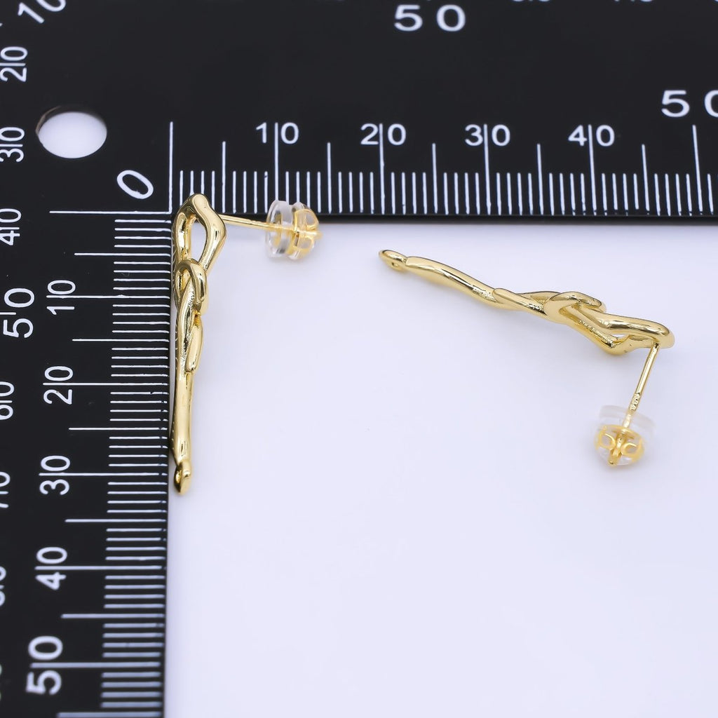 24K Gold Filled 30mm Molten Drip Knot Drop Stud Earrings Findings | Z1278