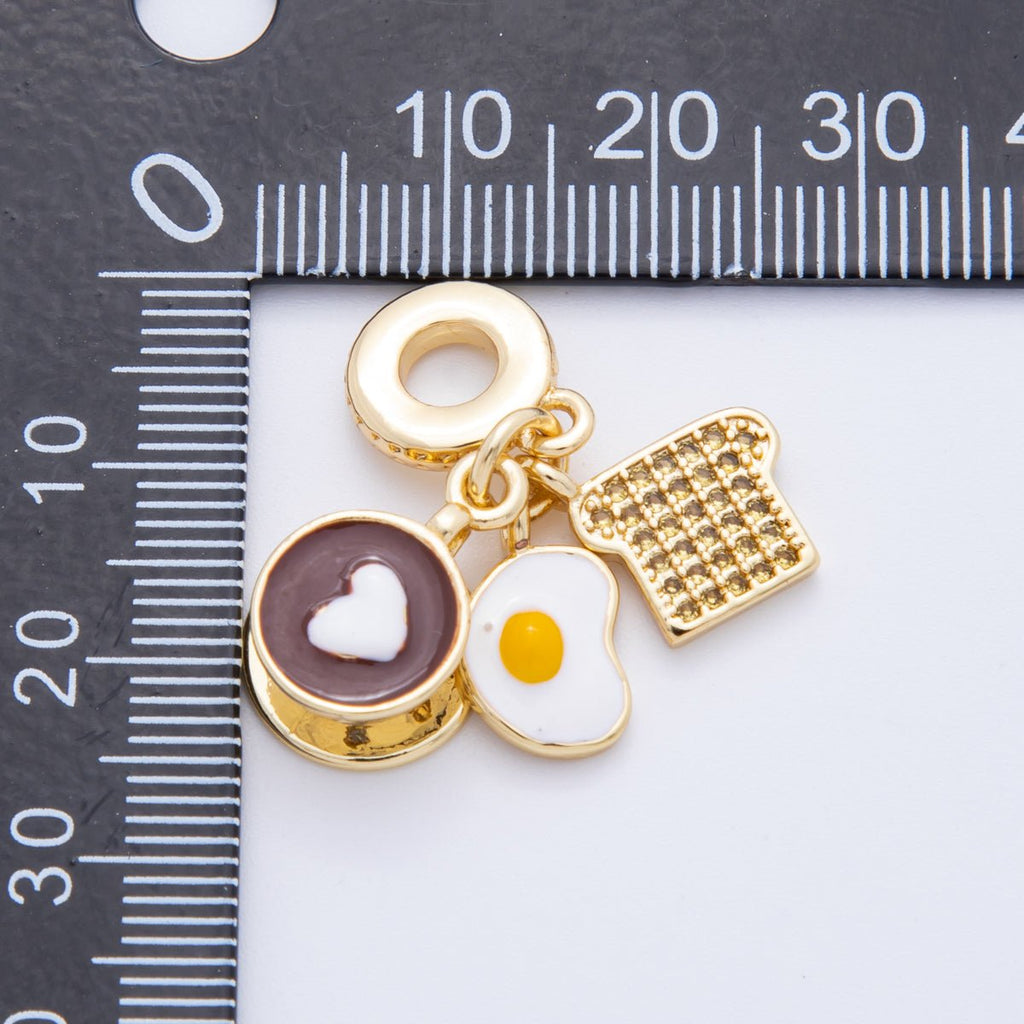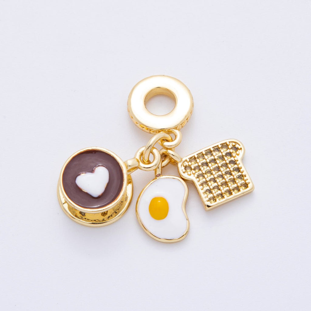18K Gold Filled 31mm Coffee, Egg, Bread Breakfast Set Rondelle Drop Charm | N1415