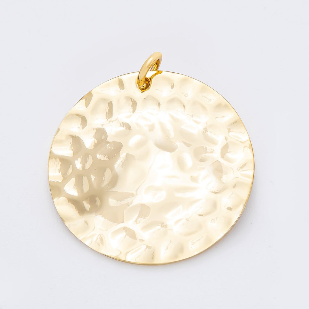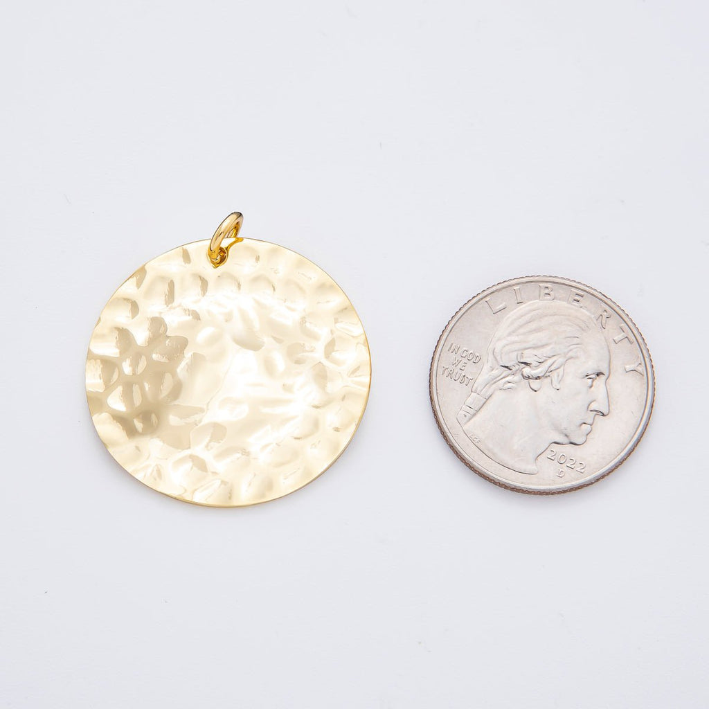 18K Gold Filled 33mm Hammered Round Coin Shape Charm | N-A1798