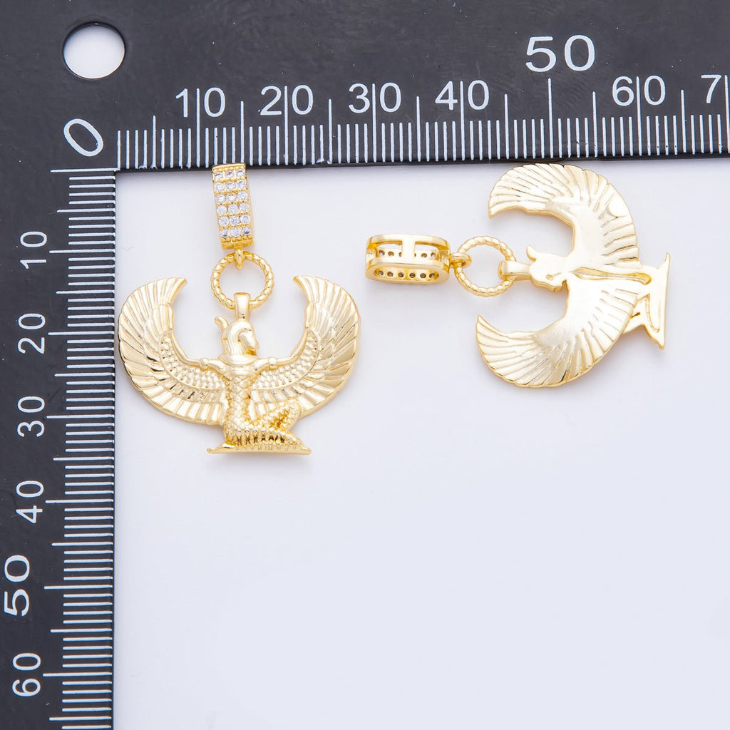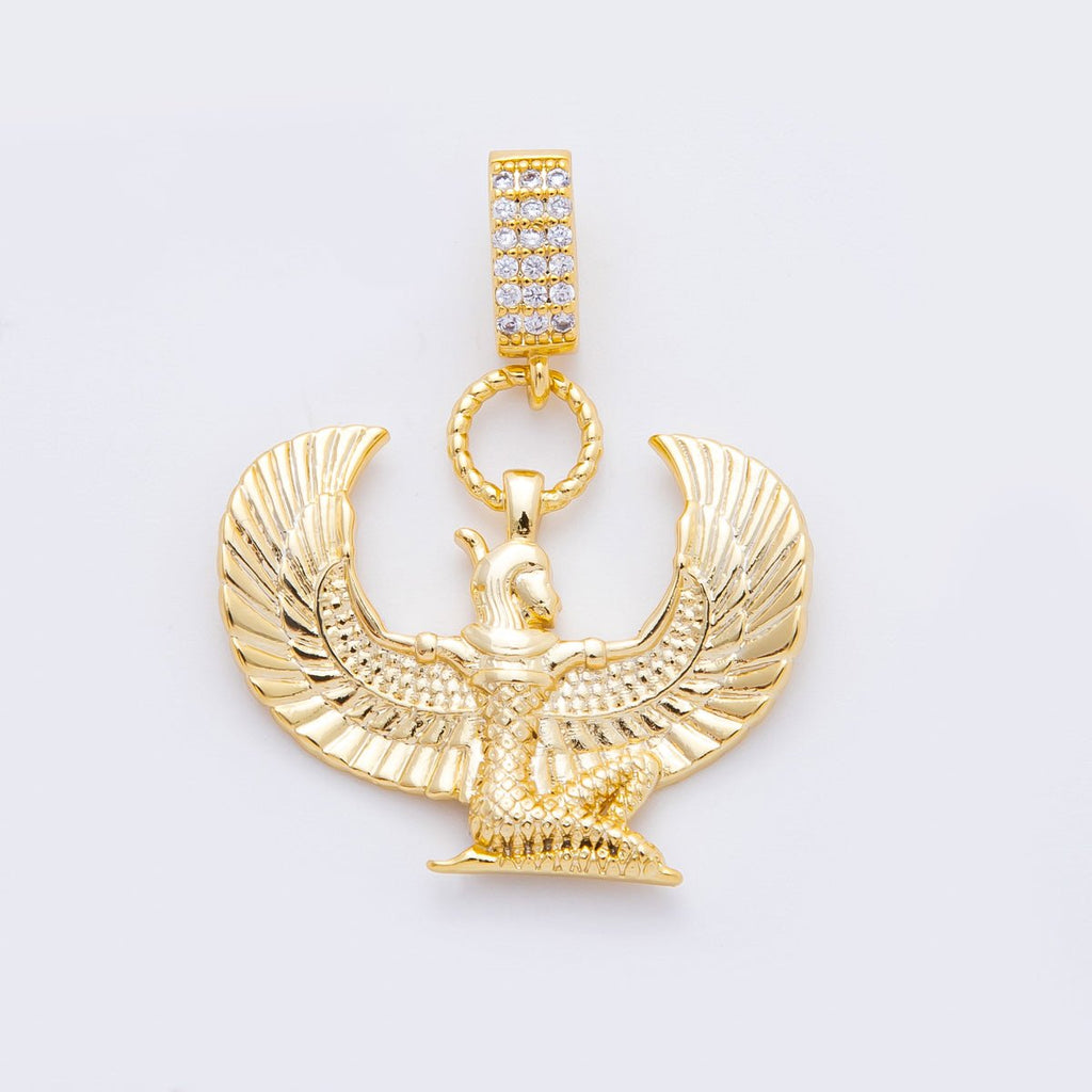 18K Gold Filled 34mm Egyptian Winged Isis Goddess Charm | N-A1222