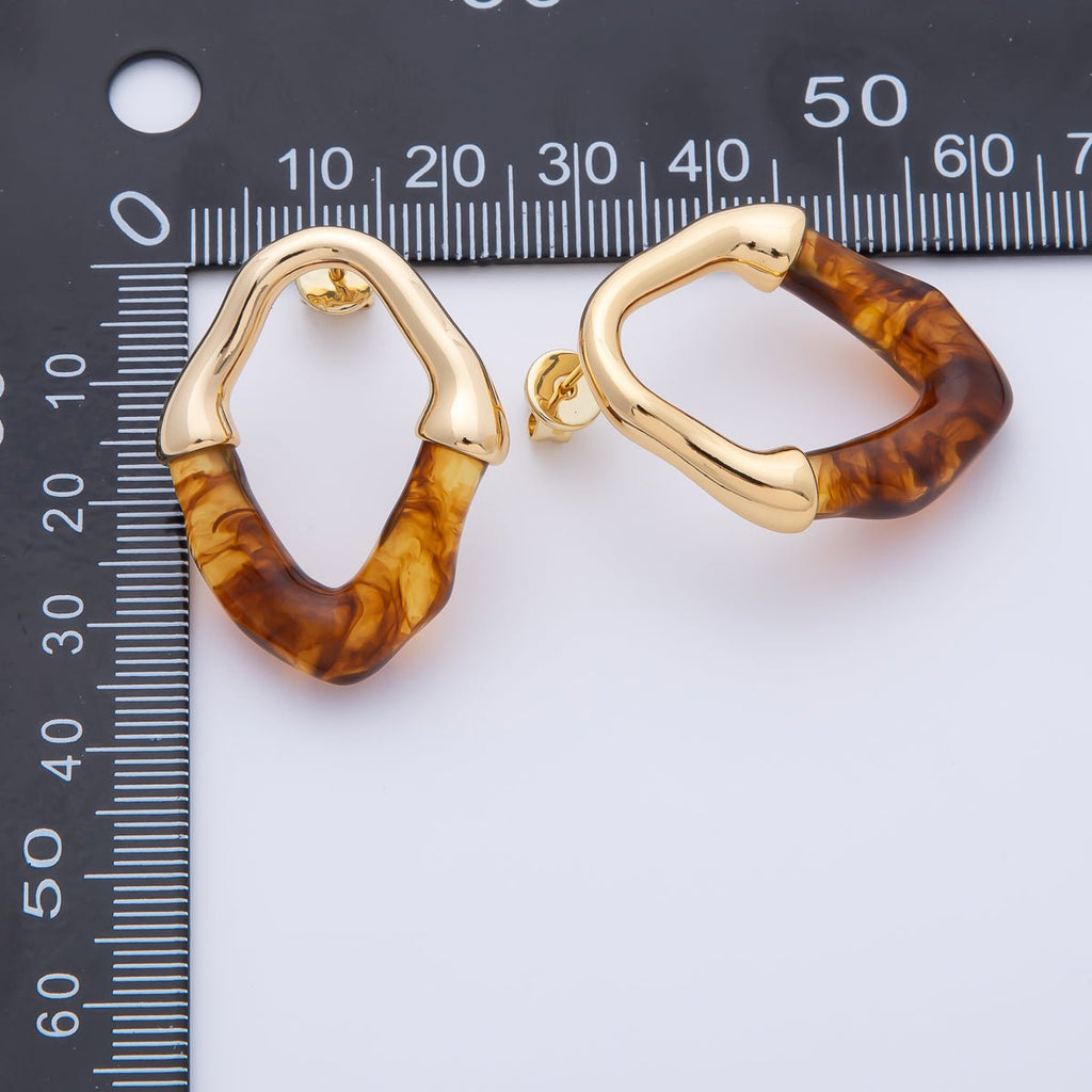 18K Gold Filled 34mm White, Black, Blue, Brown Resin Molten Oval Studs Earrings | AD1580 - AD1583
