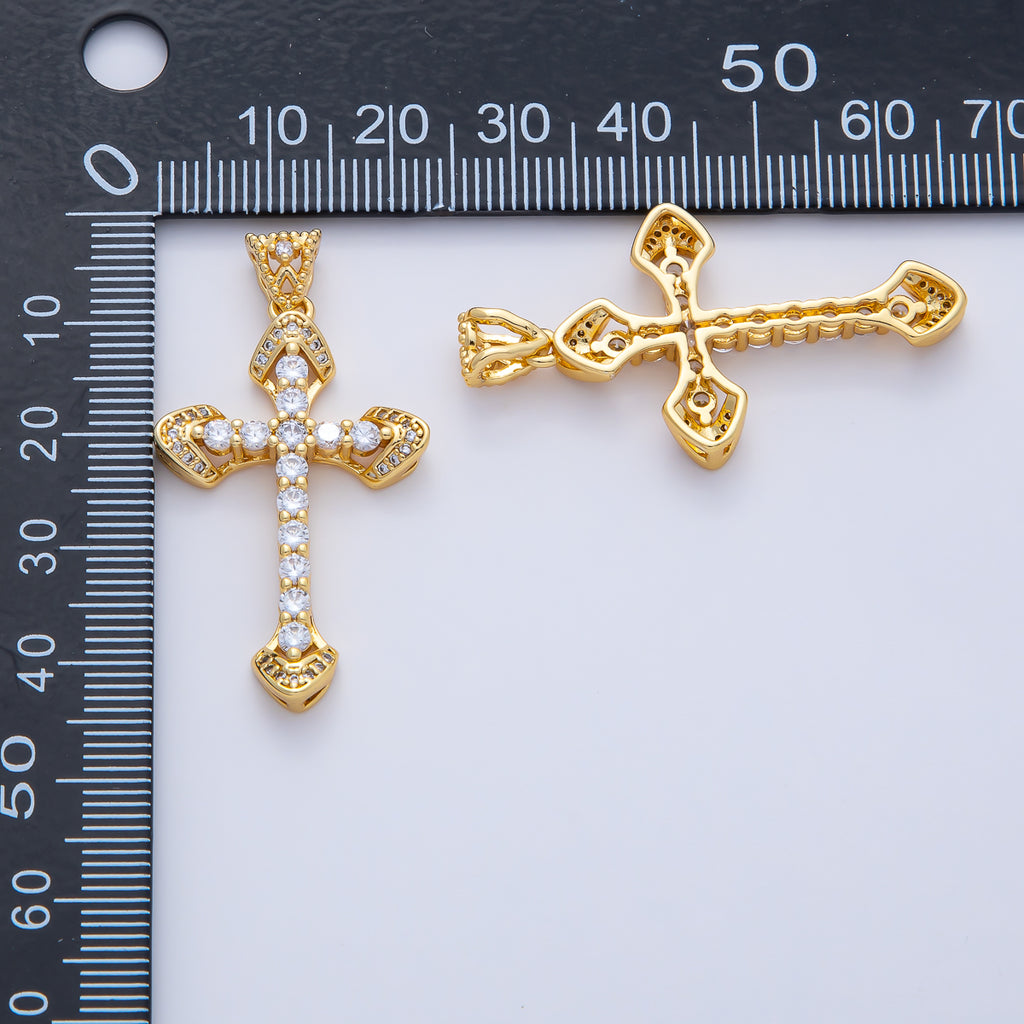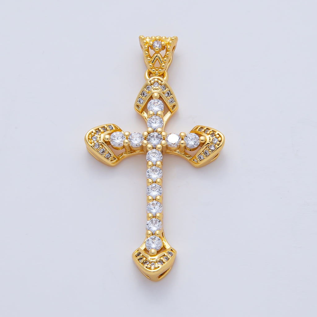 18K Gold Filled 35mm Clear Micro Paved CZ Religious Passion Cross Pendant | AF1195
