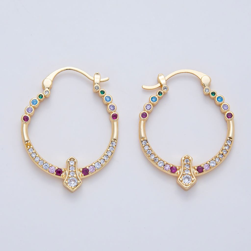18K Gold Filled 35mm Multicolor Micro Paved CZ Geometric Latch Hoop Earrings | AD1656