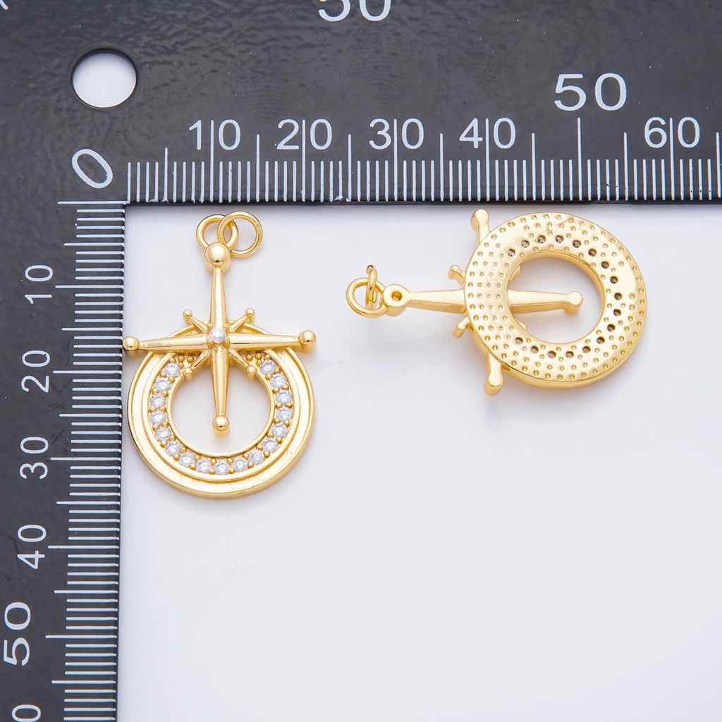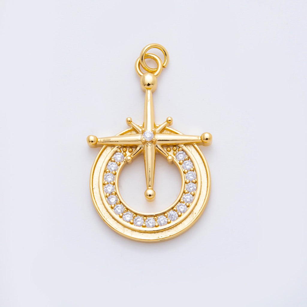 18K Gold Filled 36mm Micro Paved CZ Northern Star Polaris Charm | N259