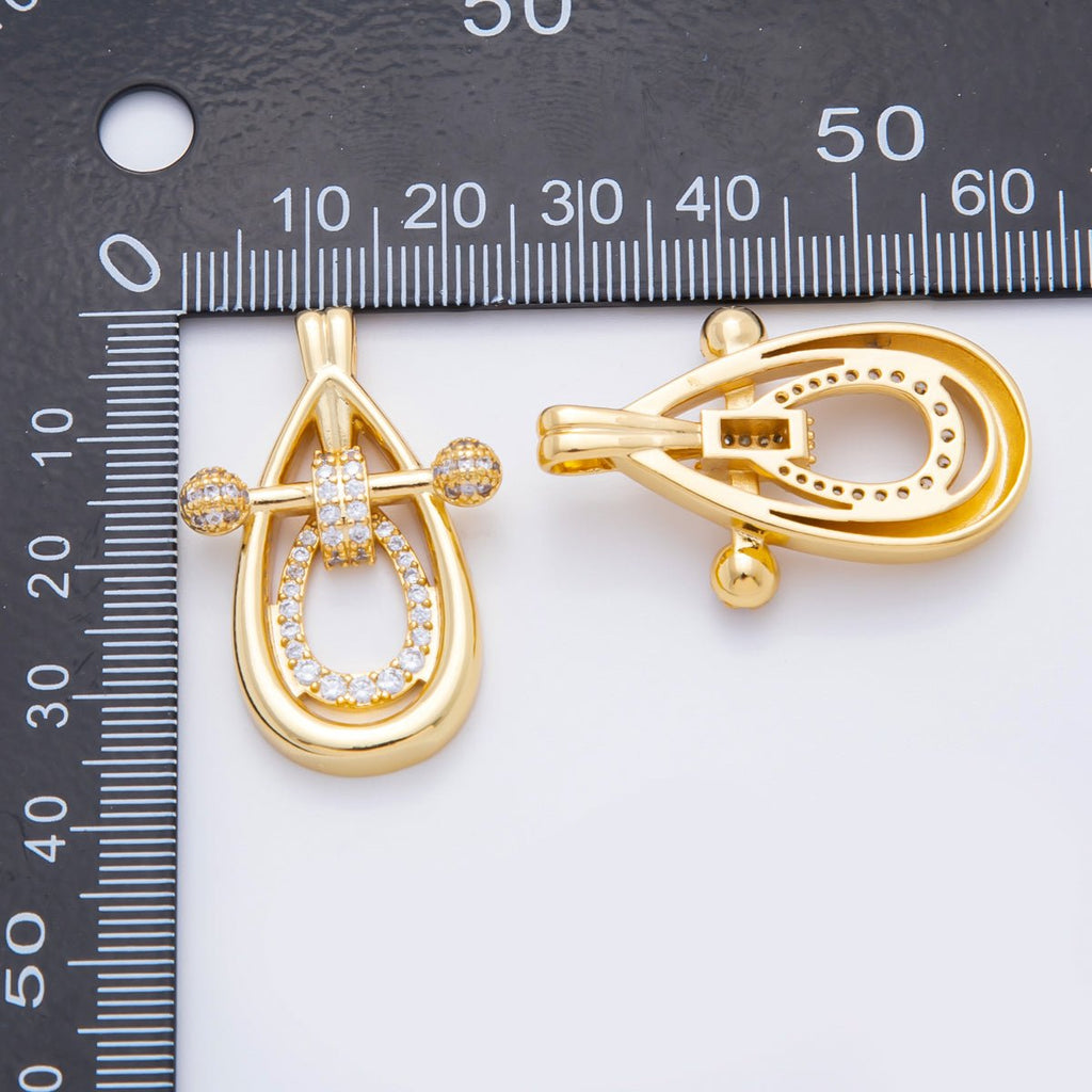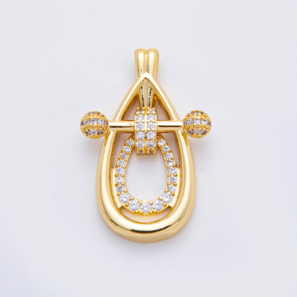 18K Gold Filled 36mm Micro Paved CZ Teardrop Gravity Lock Charm | N304