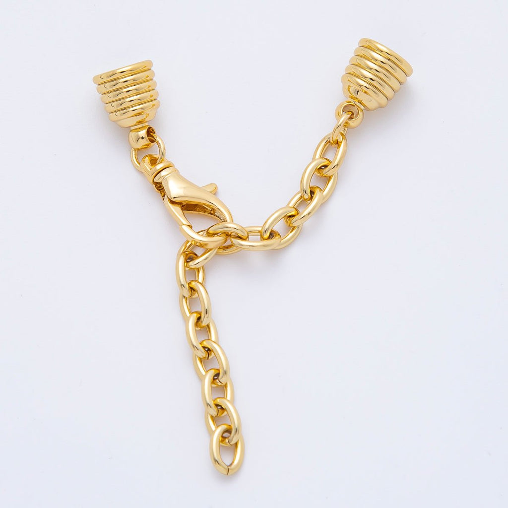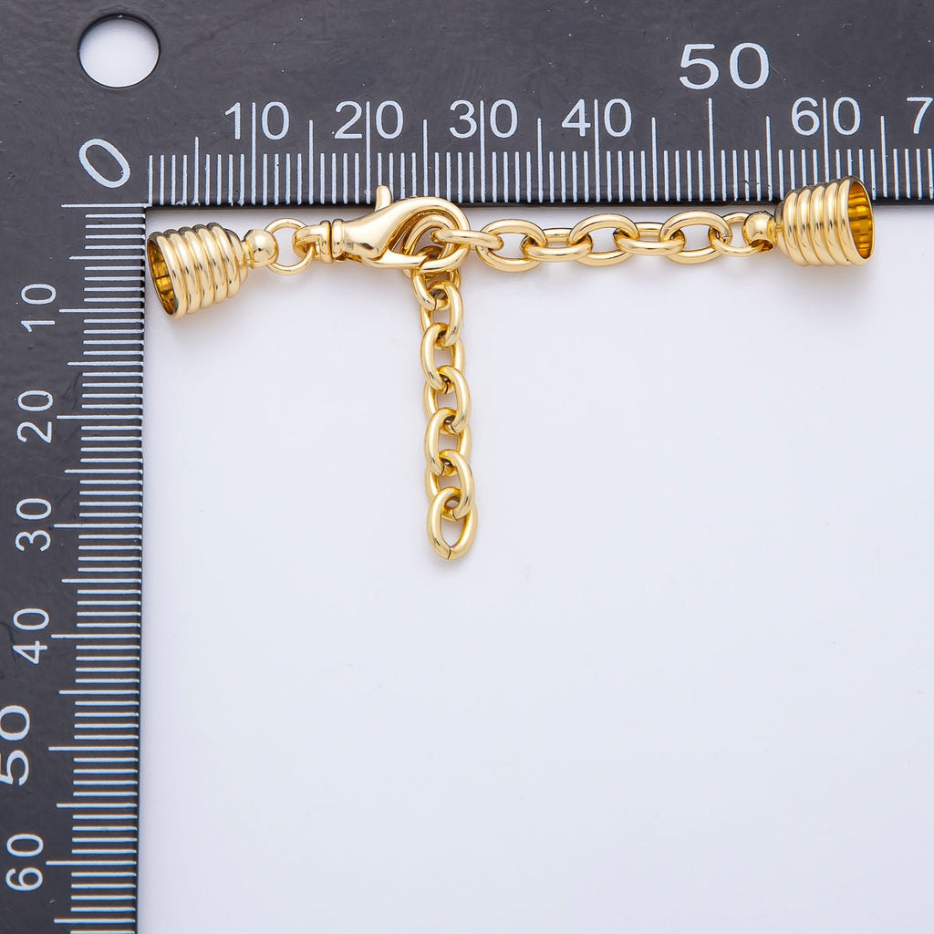 18K Gold Filled 38mm Chain Extender with Ribbed Barrel Cap Clasp Cover Finding | Z1366