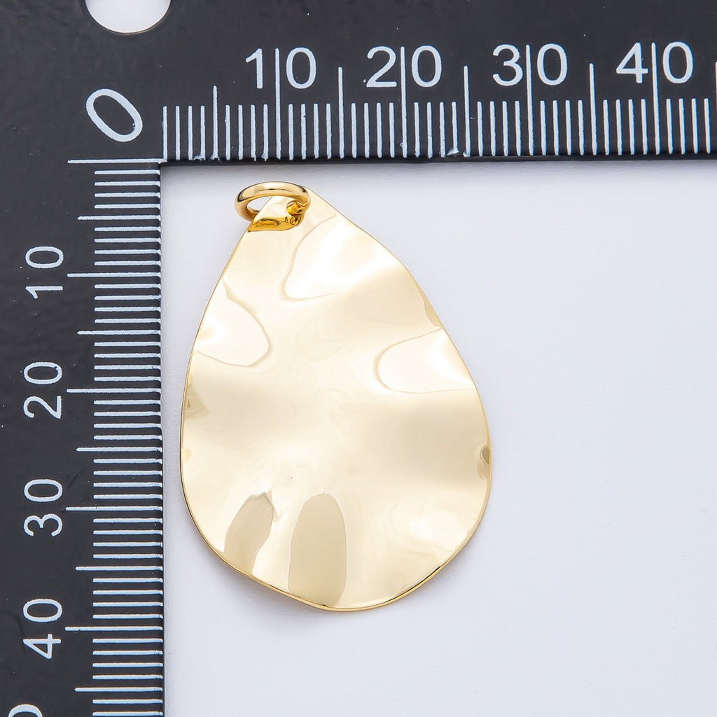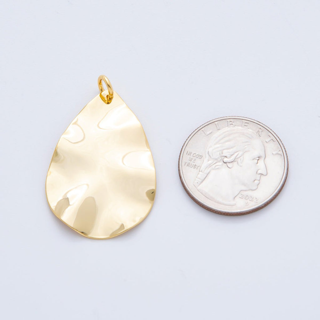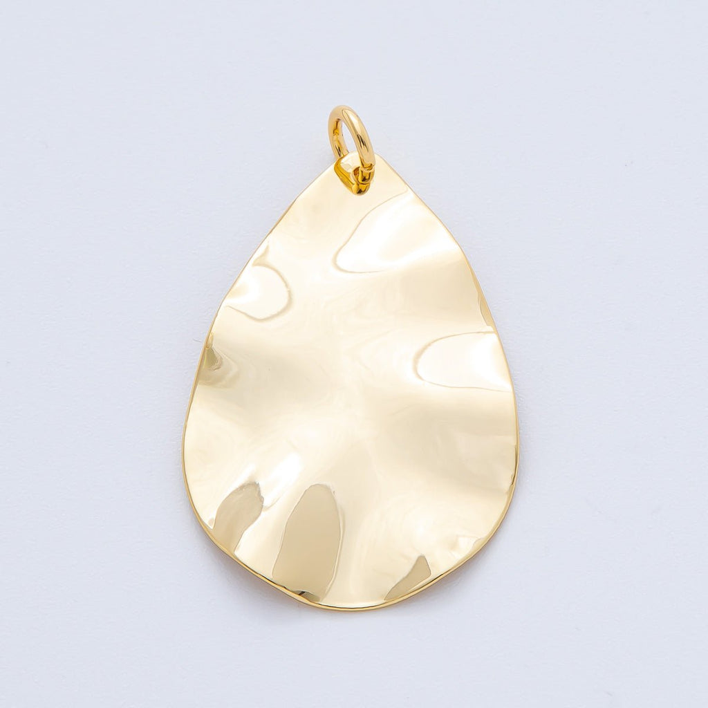 18K Gold Filled 39.5mm Hammered Molten Teardrop Charm | N-A1504