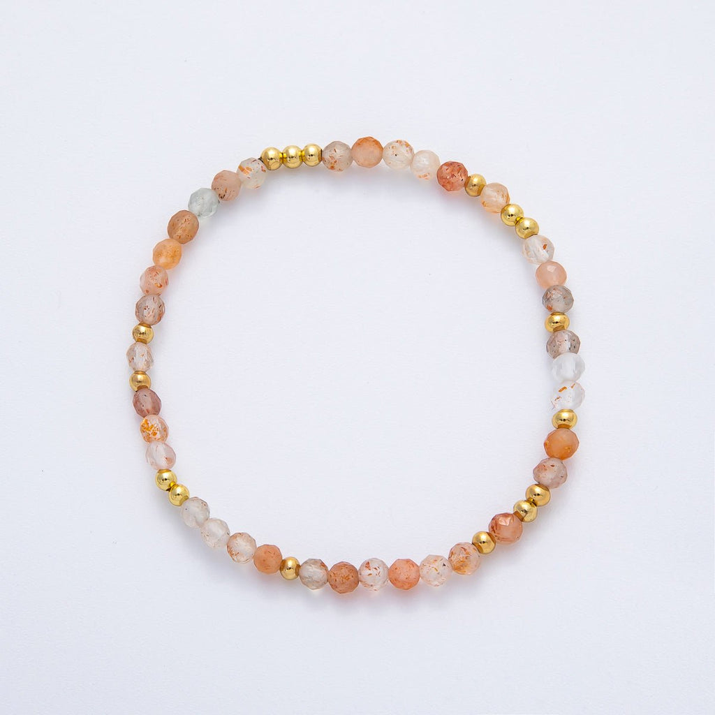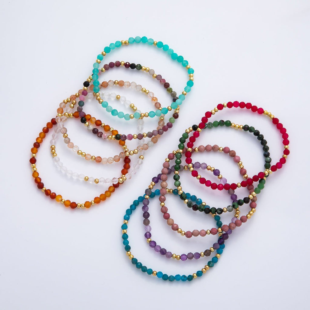 18K Gold Filled 4.1mm White, Fuchsia, Green Gemstone Handmade Beaded Bracelet | WA-3451 - WA-3457