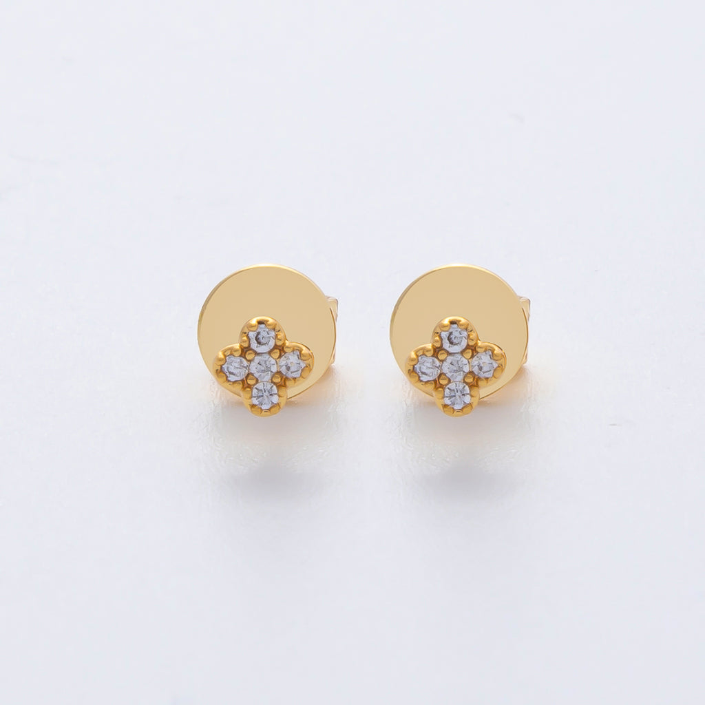 18K Gold Filled 4.5mm Clear CZ Quatrefoil Dainty Stud Earrings | AD1625