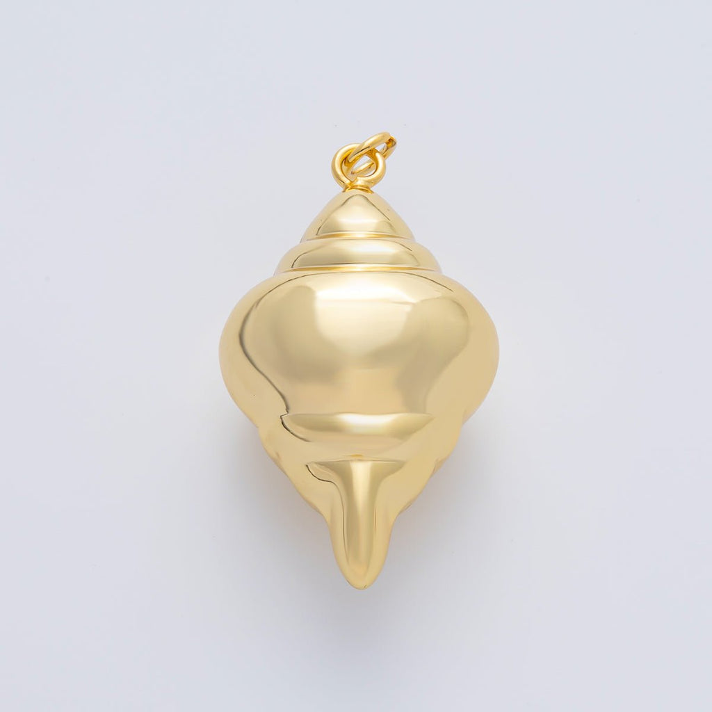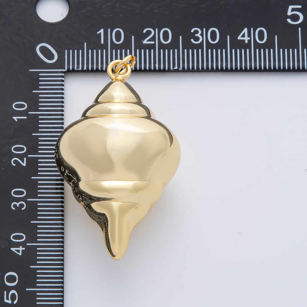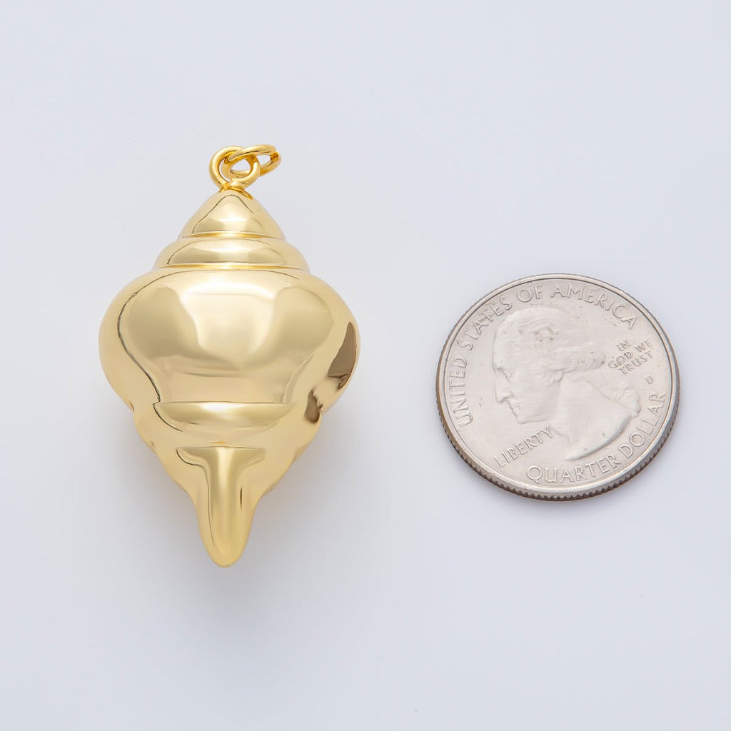 18K Gold Filled 44mm Chubby Sea Conch Shell Ocean 3d Multidimensional Charm | AF1409