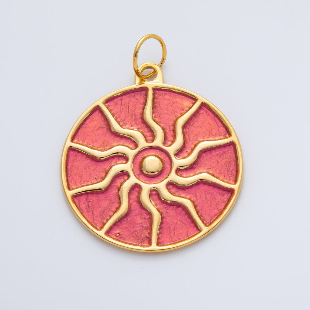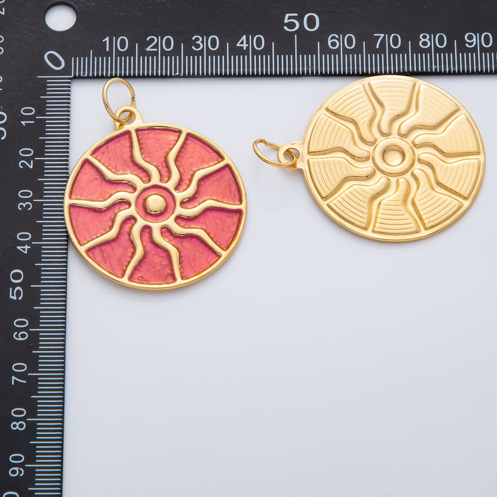 18K Gold Plated 45mm Red Enamel Solar Eclipse Medallion Charm | AF1418