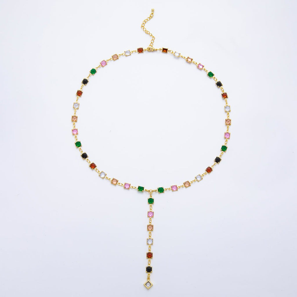 18K Gold Filled 5.7mm Clear, Multicolor Square CZ Chain 19 Inch Lariat Necklace w. Extender | WA-3273 WA-3274