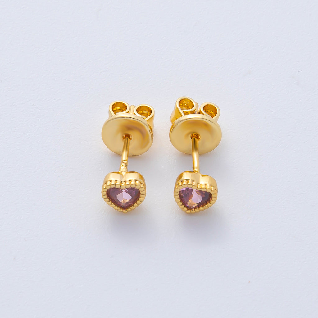 18K Gold Filled 5mm Pink CZ Heart Bezel Dainty Stud Earrings | AD1610