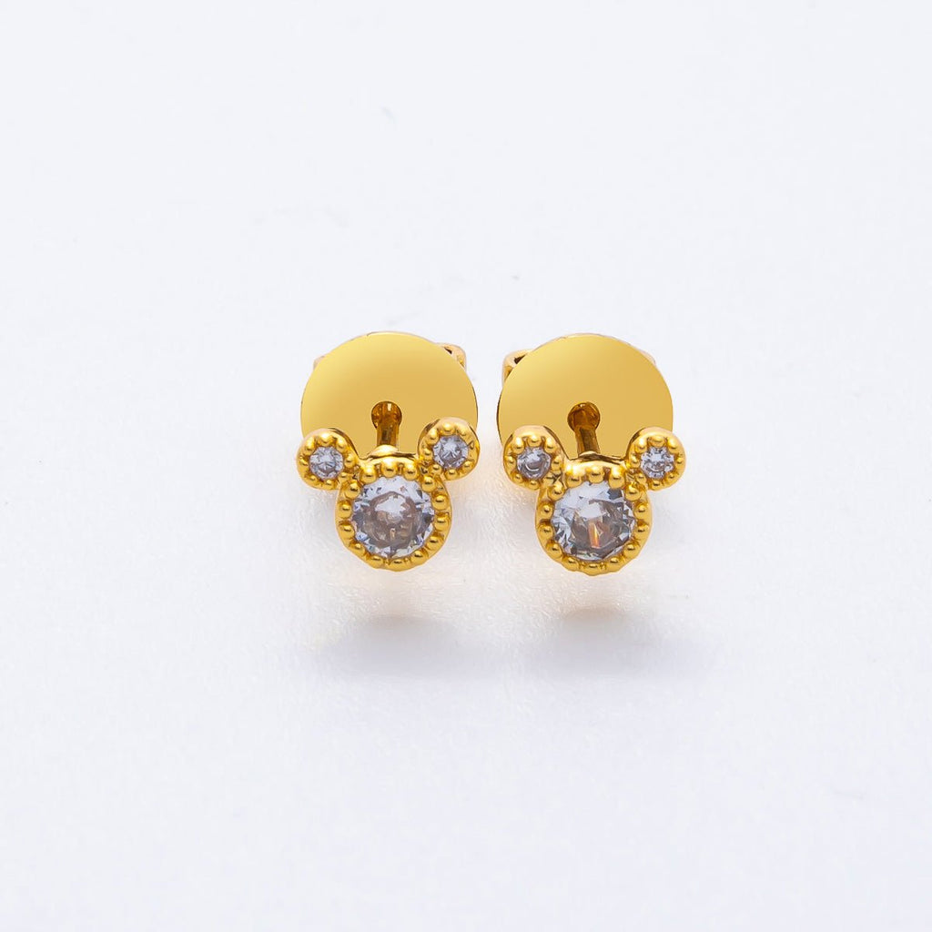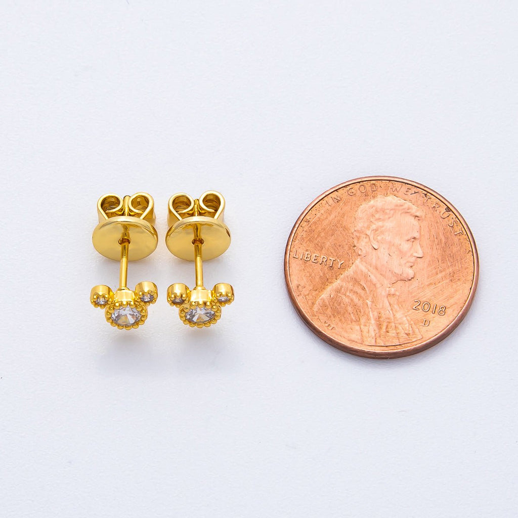 18K Gold Filled 5mm Round CZ Cluster Disney's Mickey Mouse Stud Earrings | AD1567