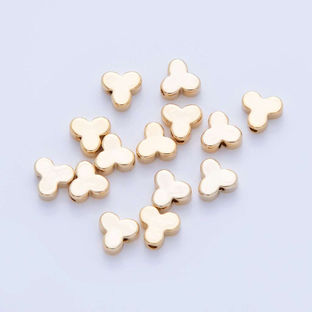 18K Gold Filled 7mm Minimalist 3-Petal Lucky Clover Flower Spacer Bead Set | AF1077