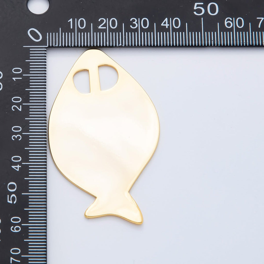 18K Gold Filled 60mm Wide Flat Under the Sea Fish Charm for Cord Necklace Supply | Z-A1252