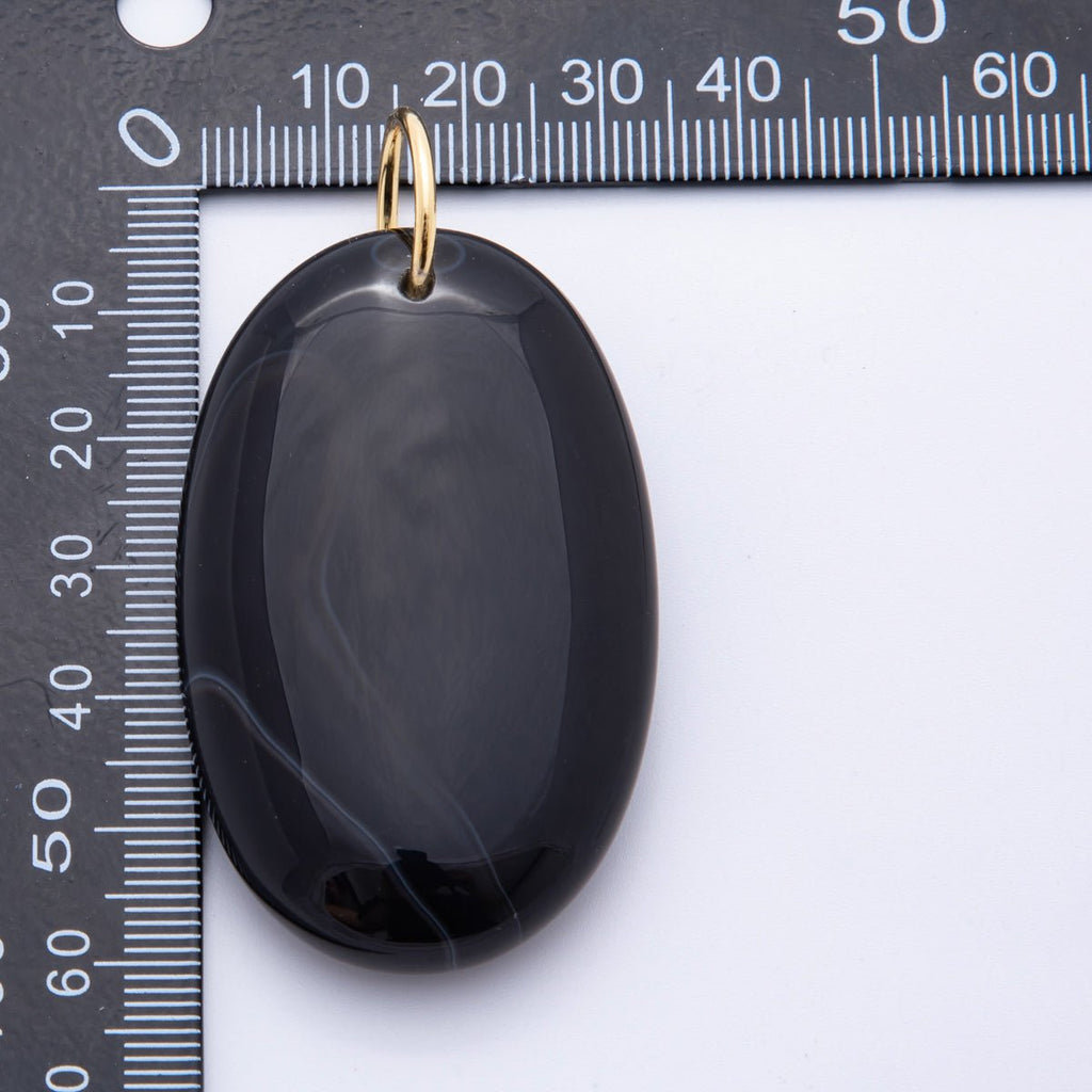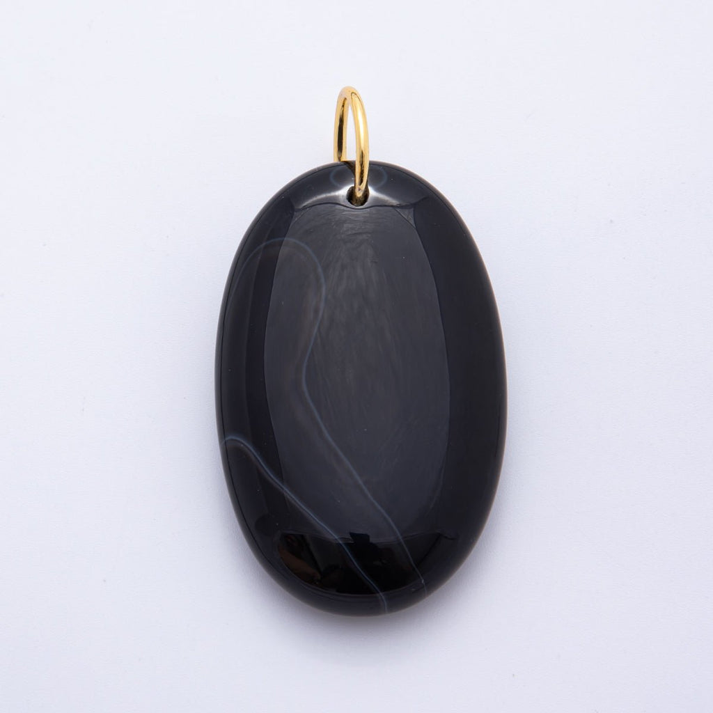 18K Gold Filled 64mm Black Agate Gemstone Long Oval Charm | E521
