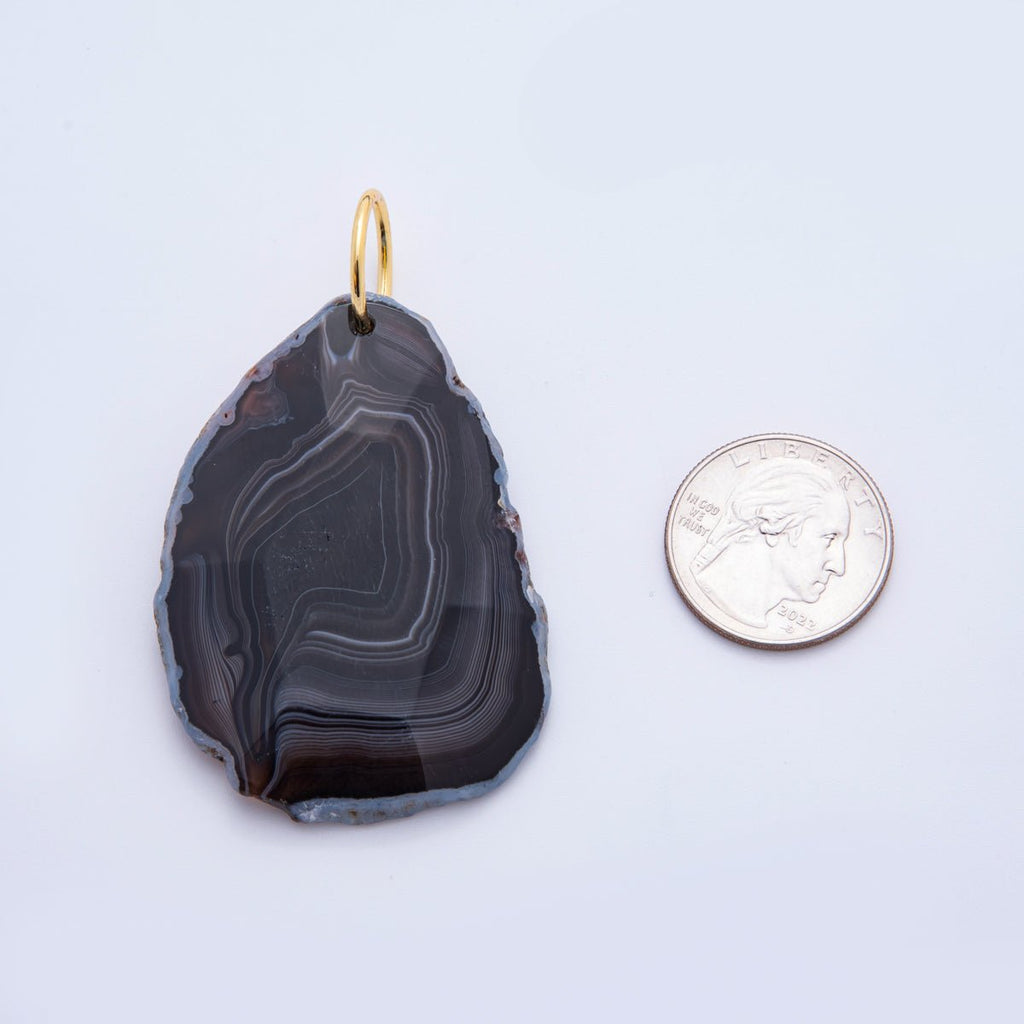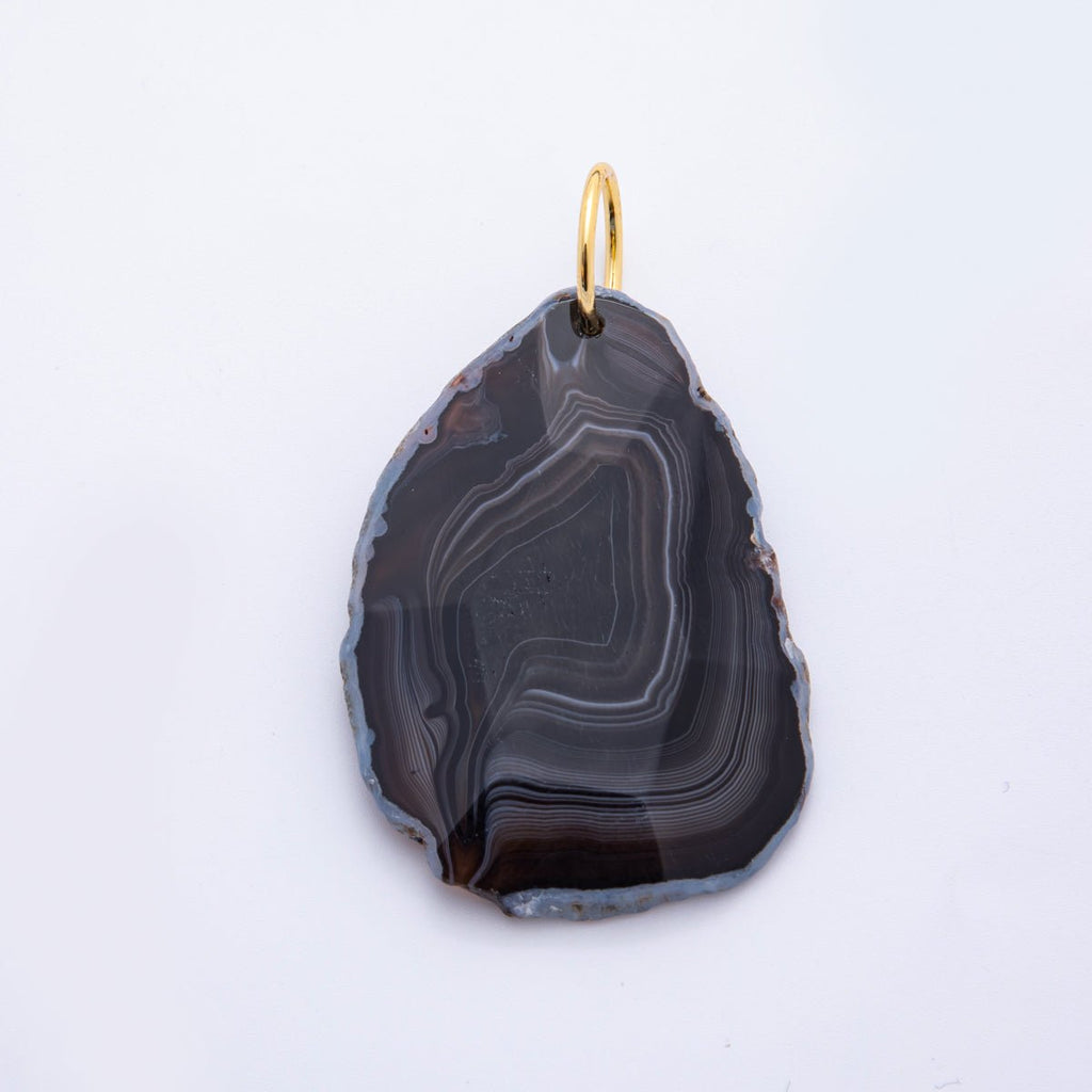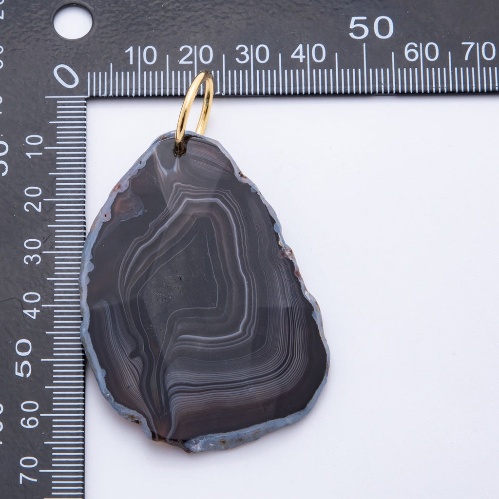 18K Gold Filled 68mm Black Agate Gemstone Raw Slice Edge Charm | E608