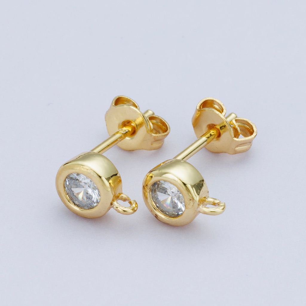 18K Gold Filled 6mm Clear CZ Round Bezel Open Loop Drop Stud Earring | Findings-00103