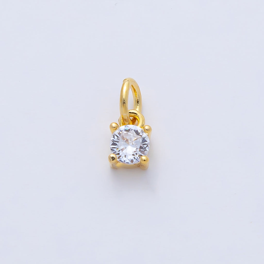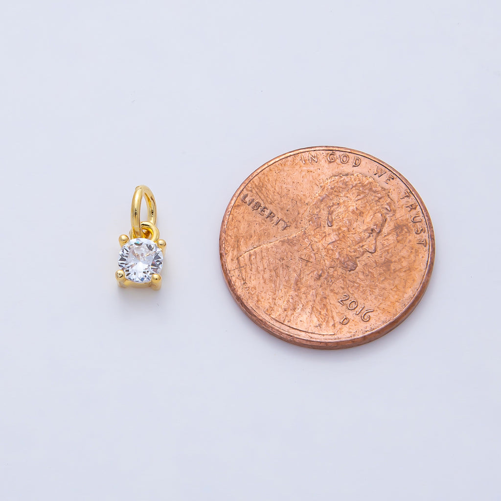 18K Gold Filled 6mm Clear CZ Round Mini Charm | AK027