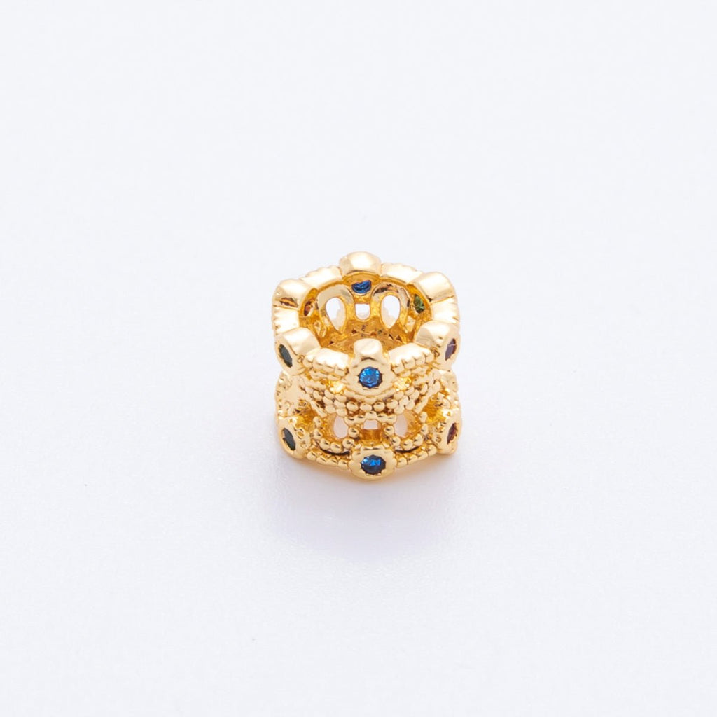 18K Gold Filled 6mm Multicolor CZ Barrel Tube Bead Spacer | AF-A1068