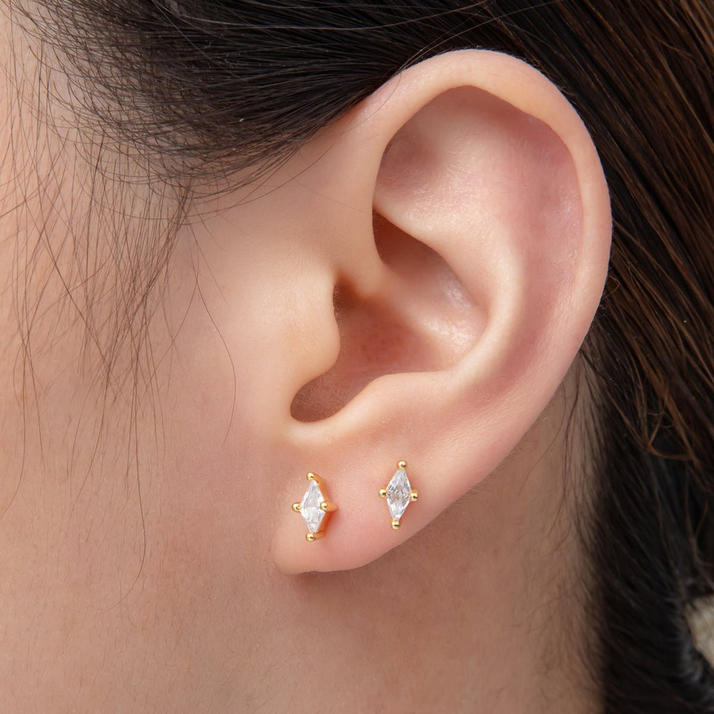 18K Gold Filled 7mm Clear CZ Marquise Dainty Stud Earrings | AD1568