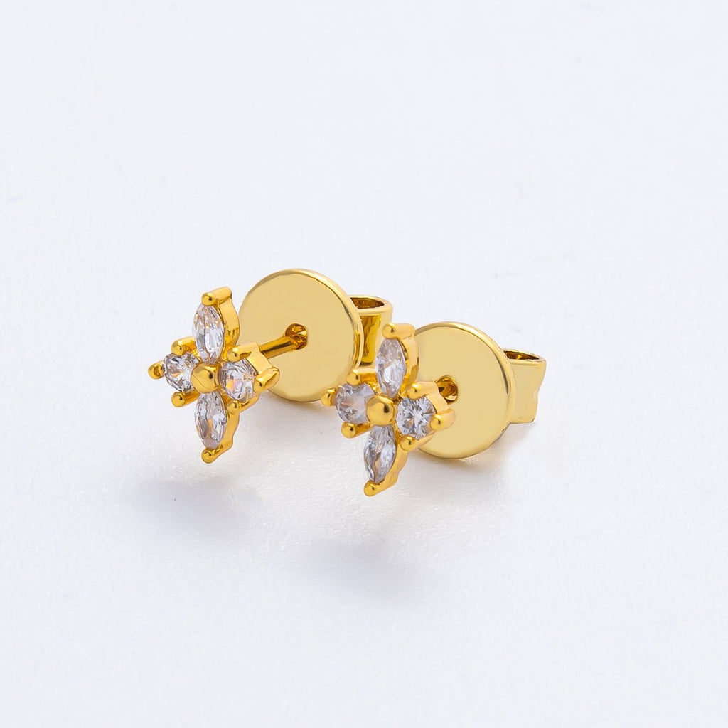 18K Gold Filled 8mm Clear CZ Marquise Blooming Flower Dainty Studs Earrings | AD1570
