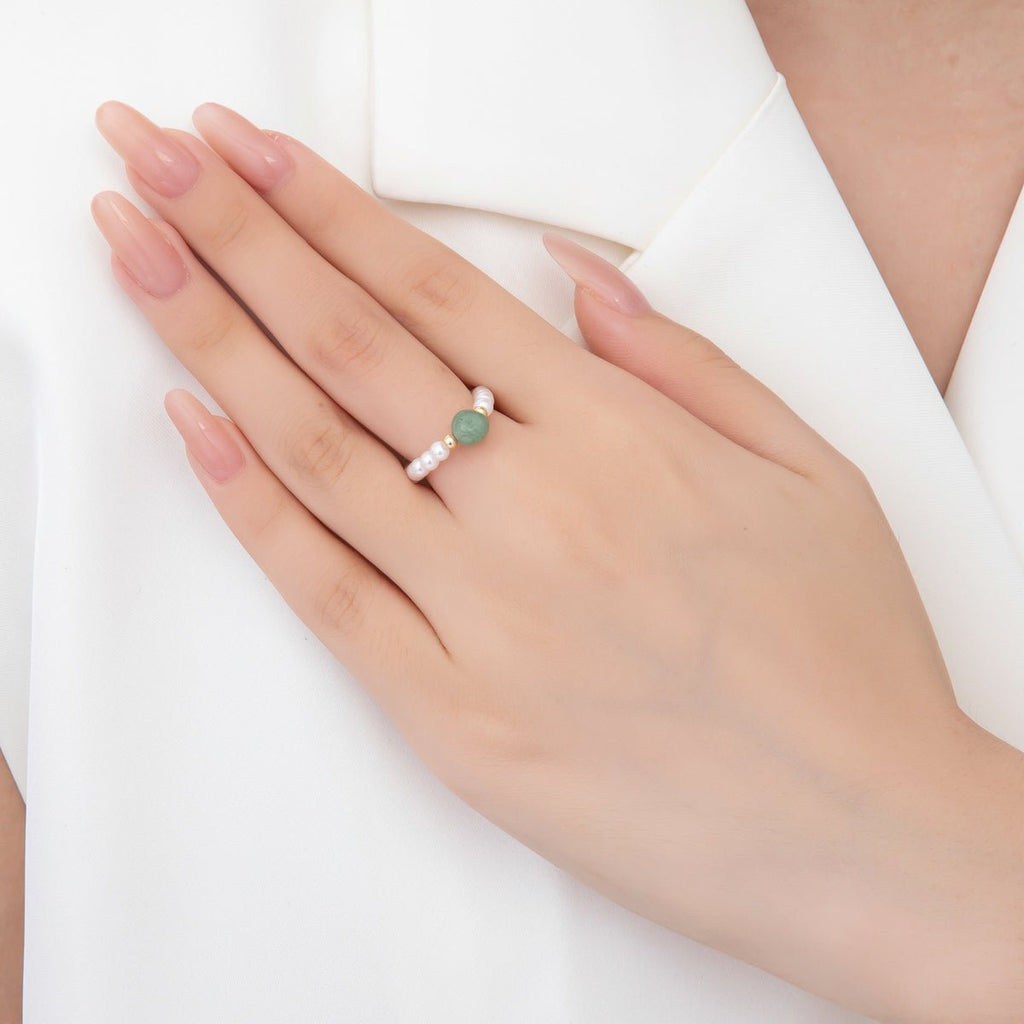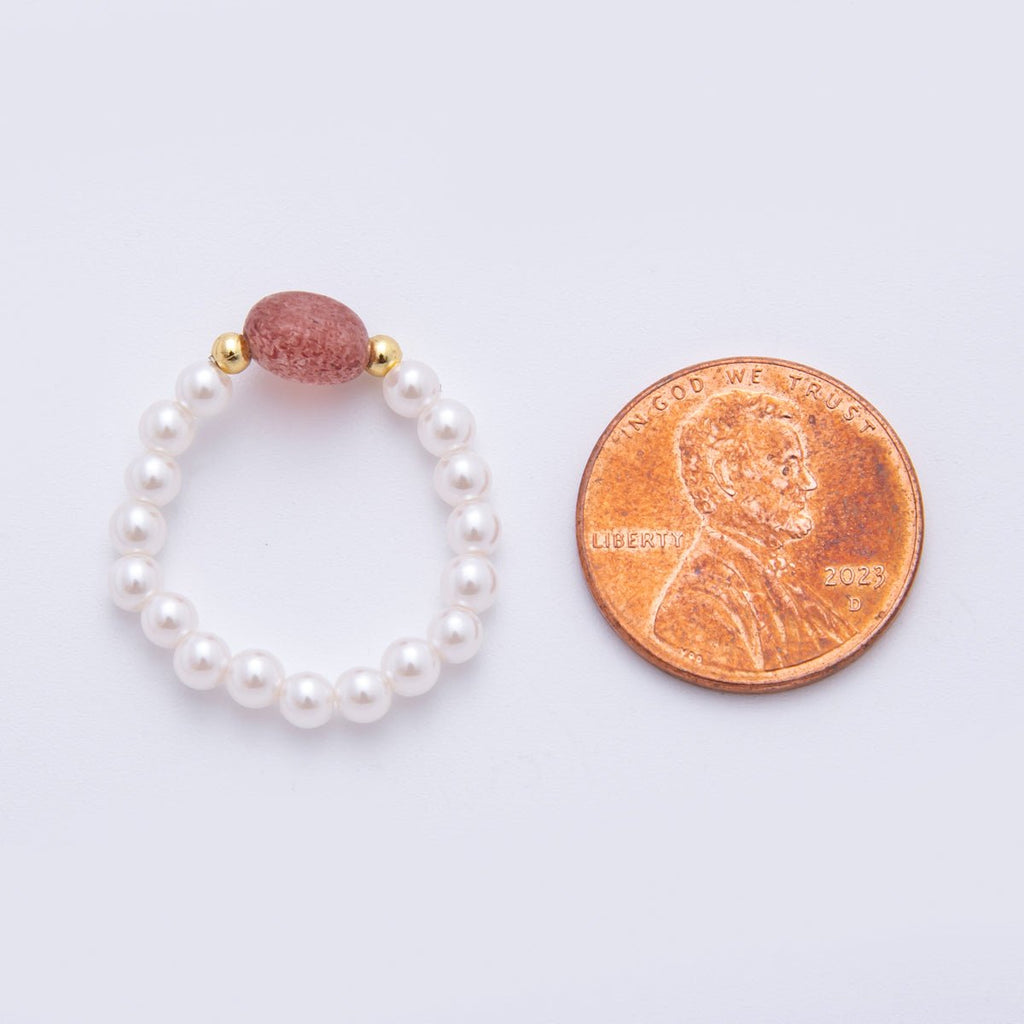 Handmade White Pearl Beaded Ring with Red, Green Agate Gemstone Bead Amethyst, Carnelian, Aventurine, Citrine | O189 O192 O251 O271
