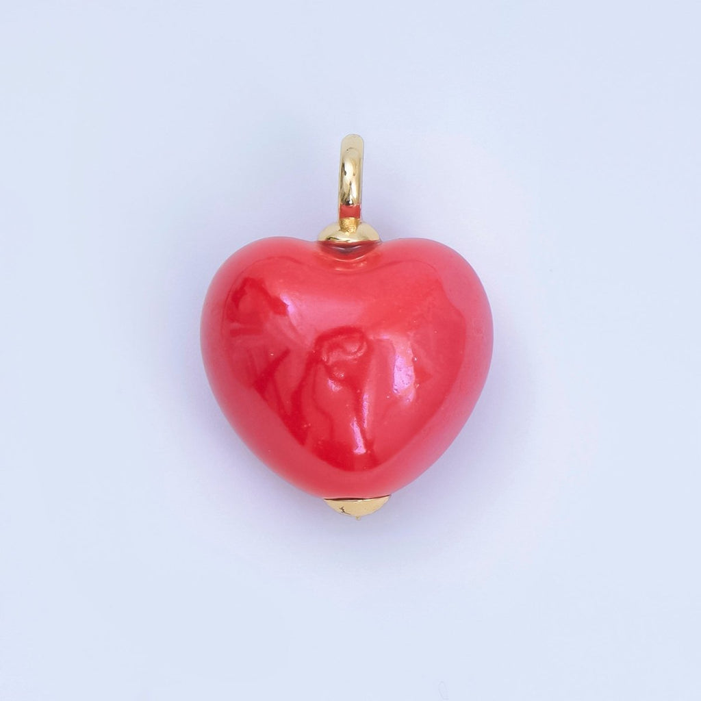 18K Gold Filled Blue, Teal, White, Pink Puffy Heart Ceramic Charm Pendant | AJ-402