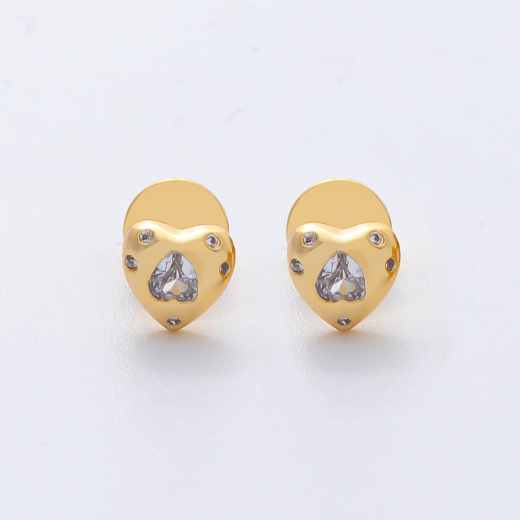 18K Gold Filled Clear CZ Dotted Heart Mini Stud Earrings | AD1634