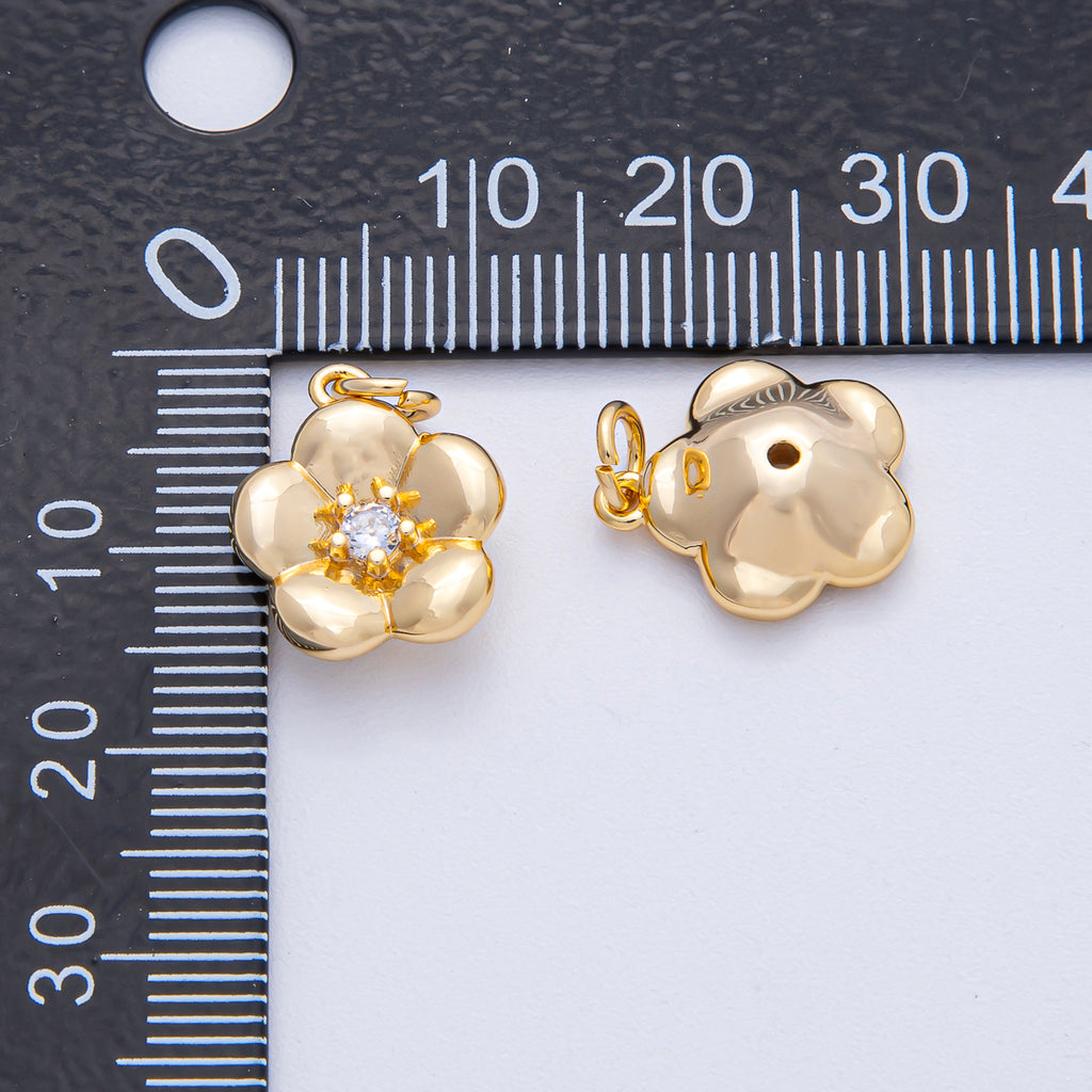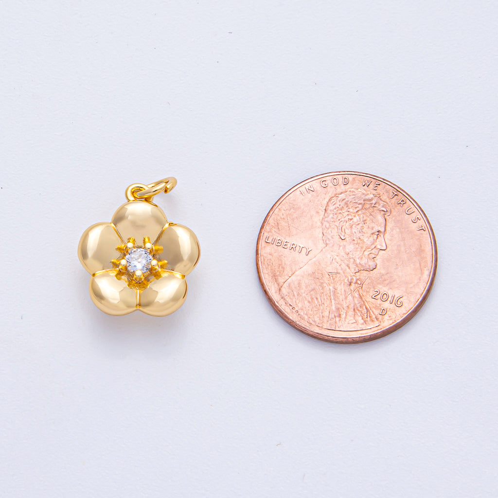 18K Gold Filled Clear CZ Flower Mini Charm | AK016